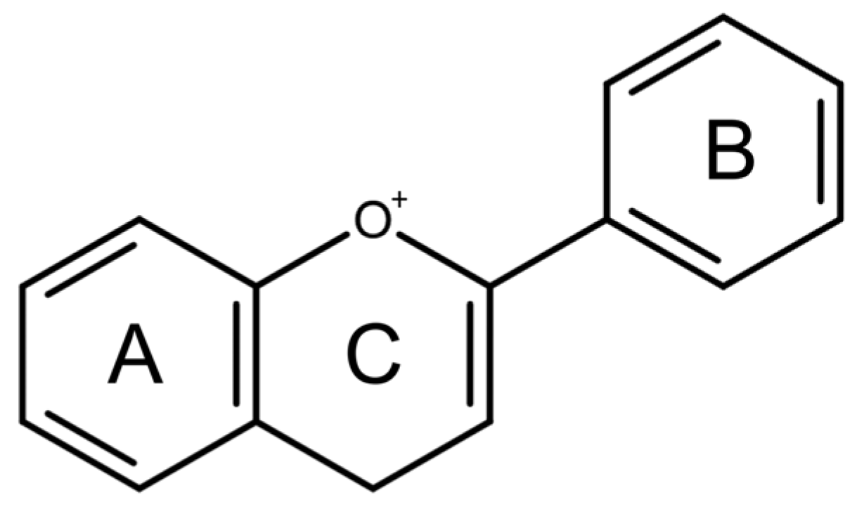 | Flavanones | Fully saturated C ring, lacking a double bond between C2 and C3 positions | ![]() |