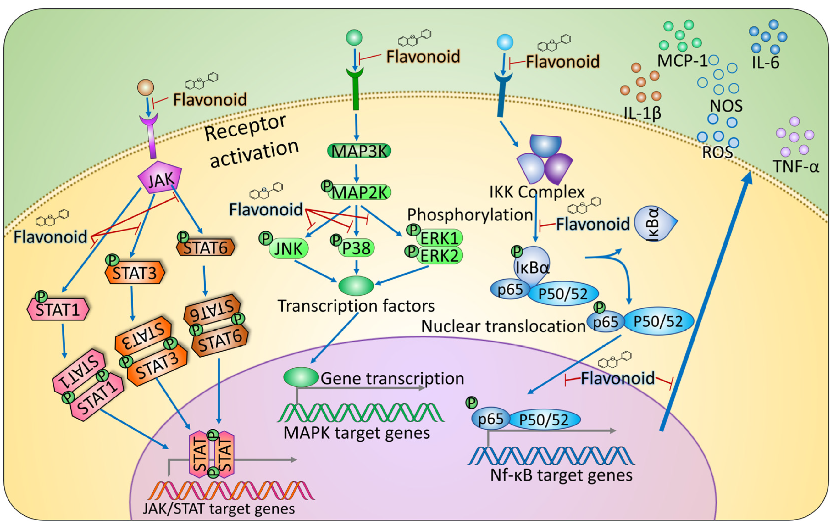 4.3.2. Flavonoids Inhibit the Mitogen-Activated Protein Kinase (MAPK) Pathway