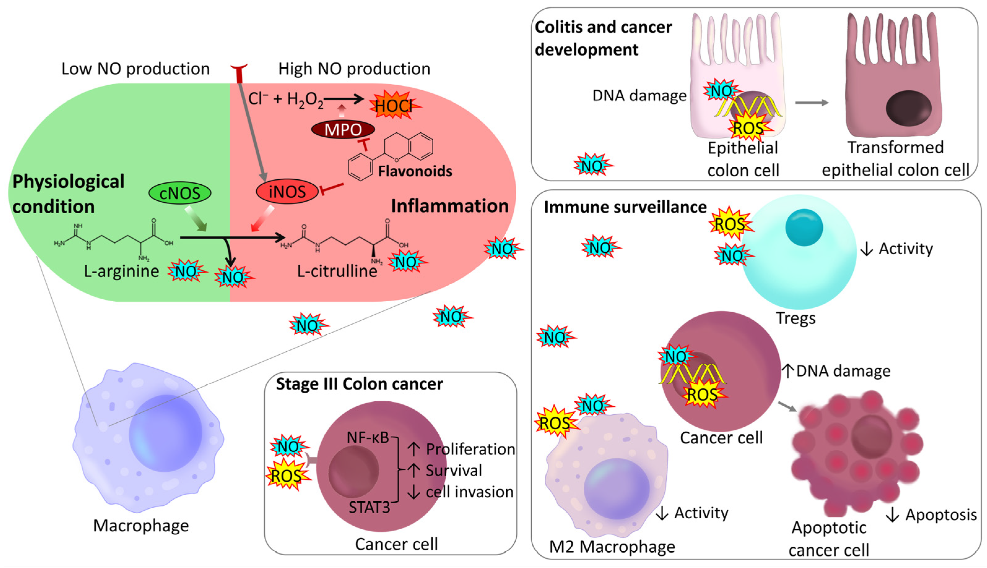 | Fisetin | BALBc mouse model of DSS-induced colitis, BALBc peritoneal Mφs | 10 mg/kg p.o. once a day from one day before of DSS administration and followed until the 8th day, 50 μM for 24 h | ↓ TNF-α, IL-1β, IL-6, IL-23, IFN-γ, IL-12, IL-8, IL-17, IL-18 and IL-33, ↓ NF-κB, ↓ MAPK (p38, ERK1/2, JNK), ↓ MPO, ↓ iNOS, ↓ GSH and SOD, ↓ MDA, ↓ COX-2 and PGE2. Useful in the treatment of cancer | [70] |