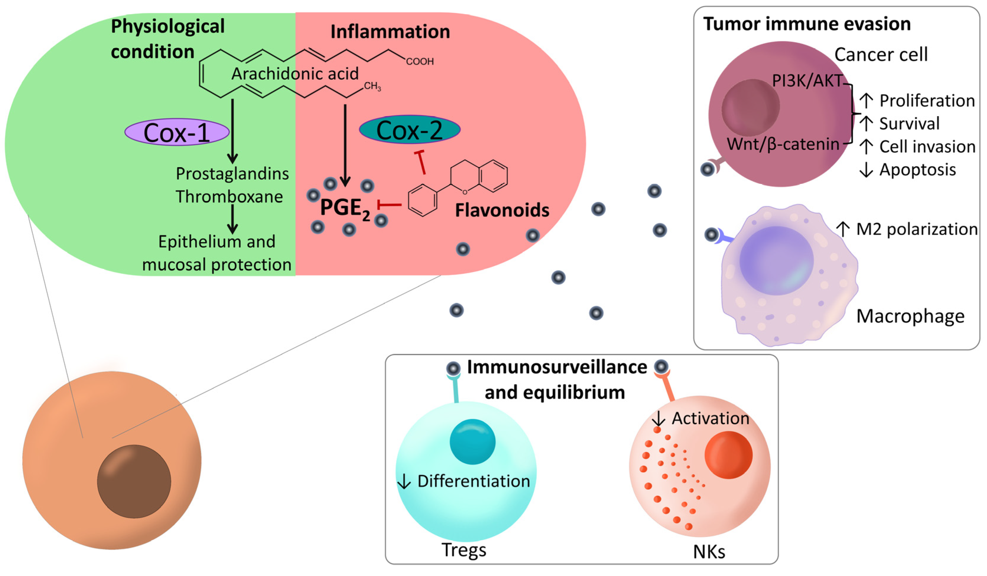 - Jin, K.; Qian, C.; Lin, J.; Liu, B. Cyclooxygenase-2-Prostaglandin E2 pathway: A key player in tumor-associated immune cells. Front. Oncol. 2023, 13, 1099811. [Google Scholar] [CrossRef]