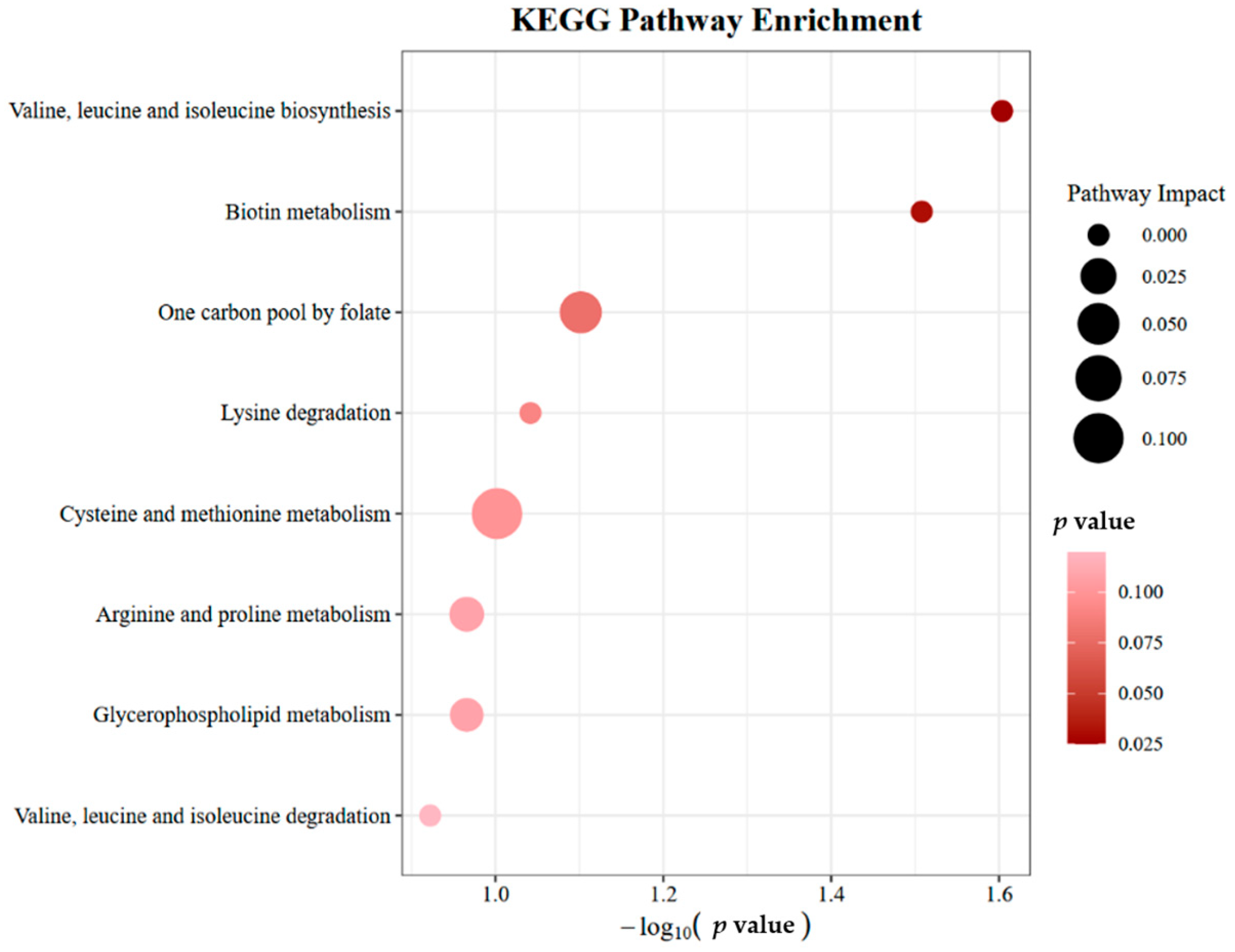 - Pang, Z.; Lu, Y.; Zhou, G.; Hui, F.; Xu, L.; Viau, C.; Spigelman, A.F.; MacDonald, P.E.; Wishart, D.S.; Li, S.; et al. MetaboAnalyst 6.0: Towards a Unified Platform for Metabolomics Data Processing, Analysis and Interpretation. Nucleic Acids Res. 2024, 52, W398–w406. [Google Scholar] [CrossRef]