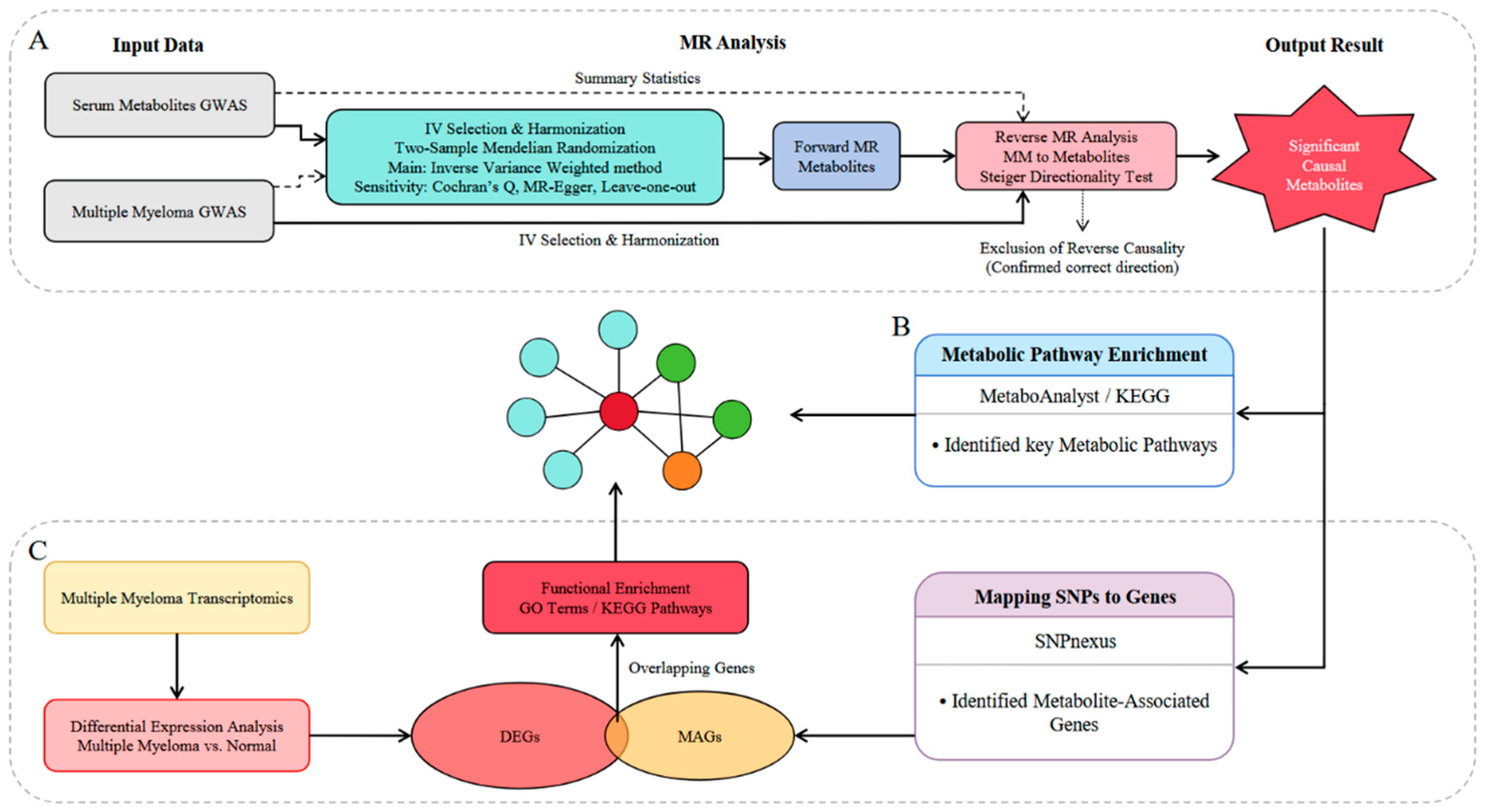 Chicago/Turabian StyleLiu, Yuanheng, Daoyuan Qin, Haohan Ye, Lujun Tang, and Xiaoli Li. 2026. "Integrating Bidirectional Mendelian Randomization with Multi-Omics Reveals Causal Serum Metabolites and Novel Metabolic Drivers of Multiple Myeloma" International Journal of Molecular Sciences 27, no. 4: 1904. https://doi.org/10.3390/ijms27041904