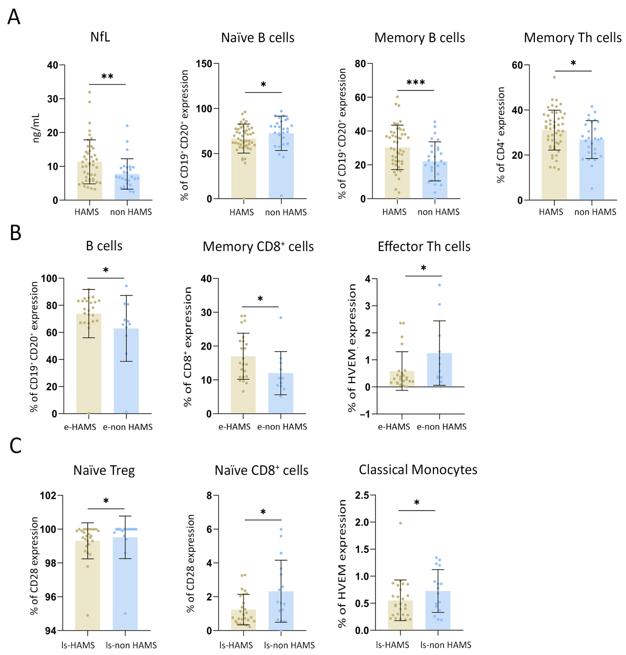 2.2. Immune Signatures Distinguish HAMS at Diagnosis in Early-Stage MS Patients