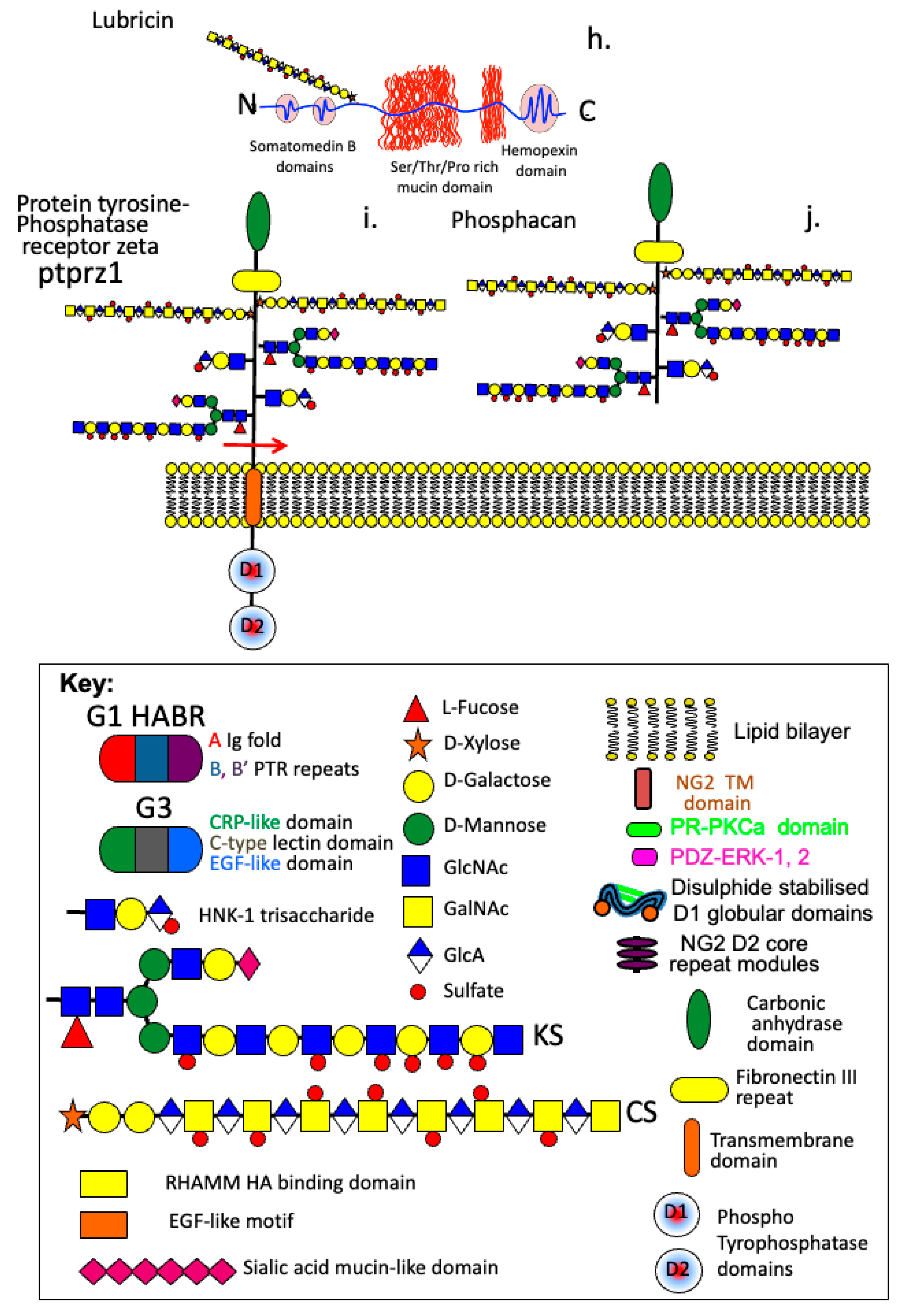 - Faissner, A.; Heck, N.; Dobbertin, A.; Garwood, J. DSD-1-Proteoglycan/Phosphacan and receptor protein tyrosine phosphatase-beta isoforms during development and regeneration of neural tissues. Adv. Exp. Med. Biol. 2006, 557, 25–53. [Google Scholar] [CrossRef]