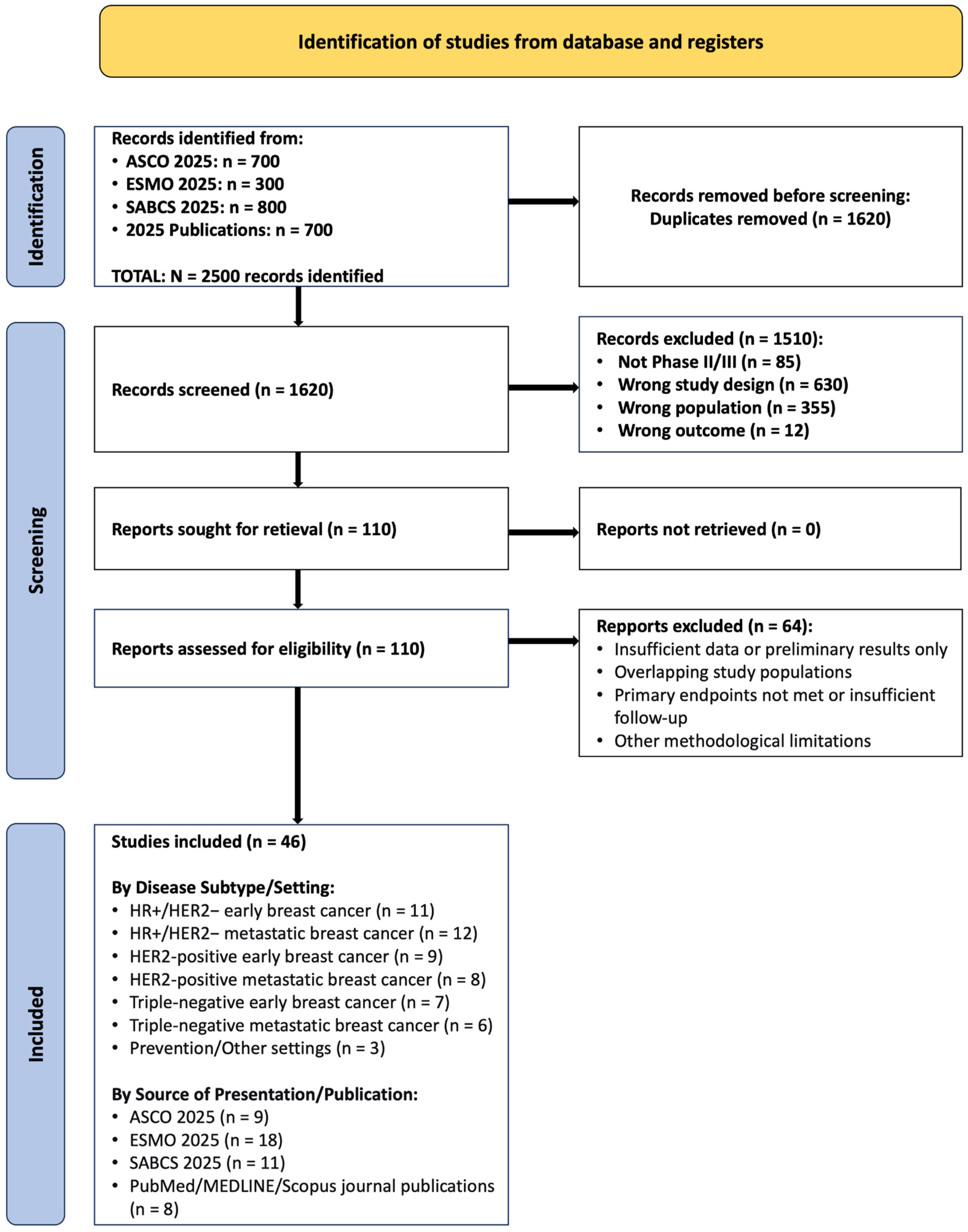 - To systematically identify and evaluate pivotal breast cancer trials presented at major oncology conferences and published in high-impact journals during 2025.