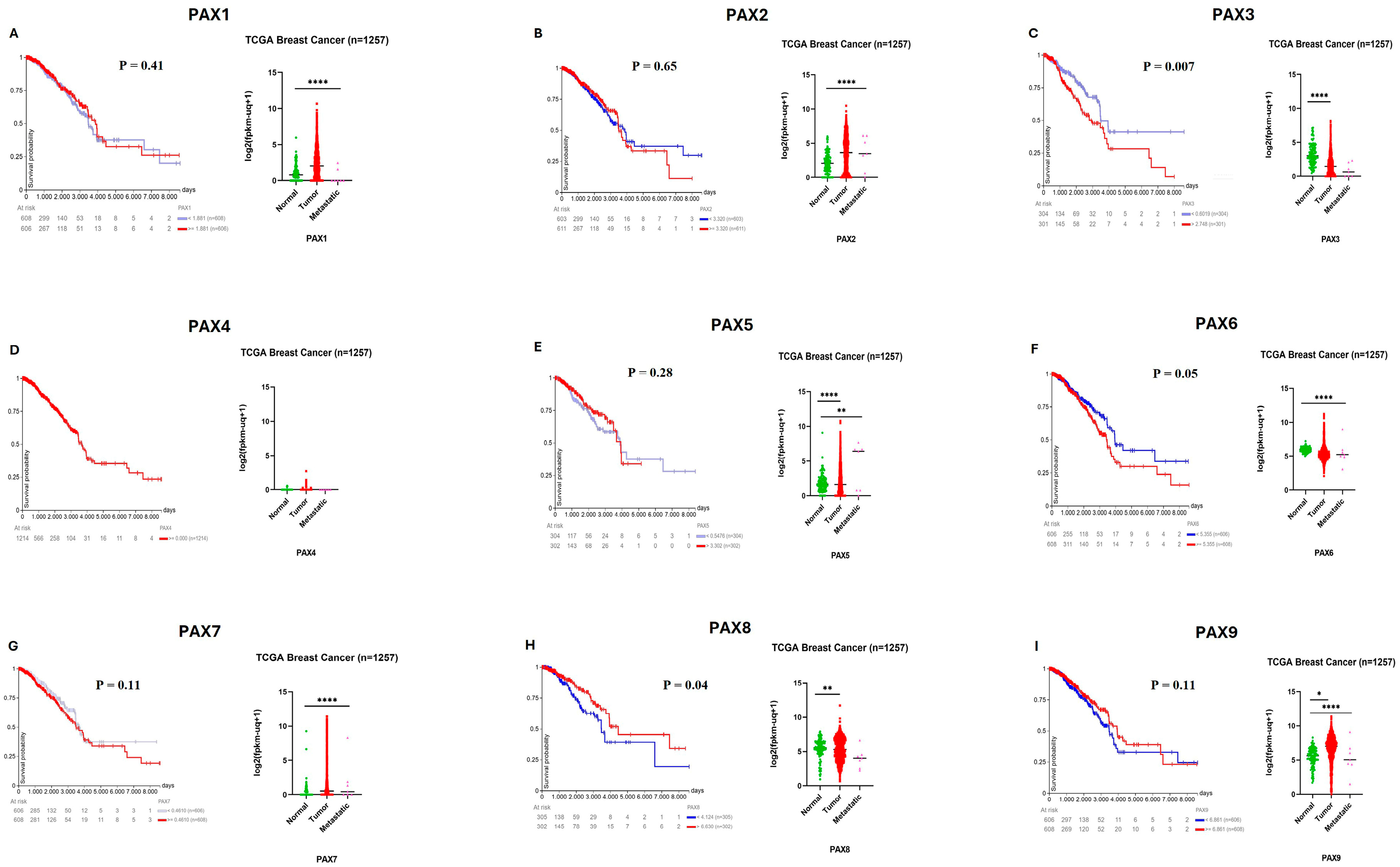 2.7. Prognostic Value of PAX Family