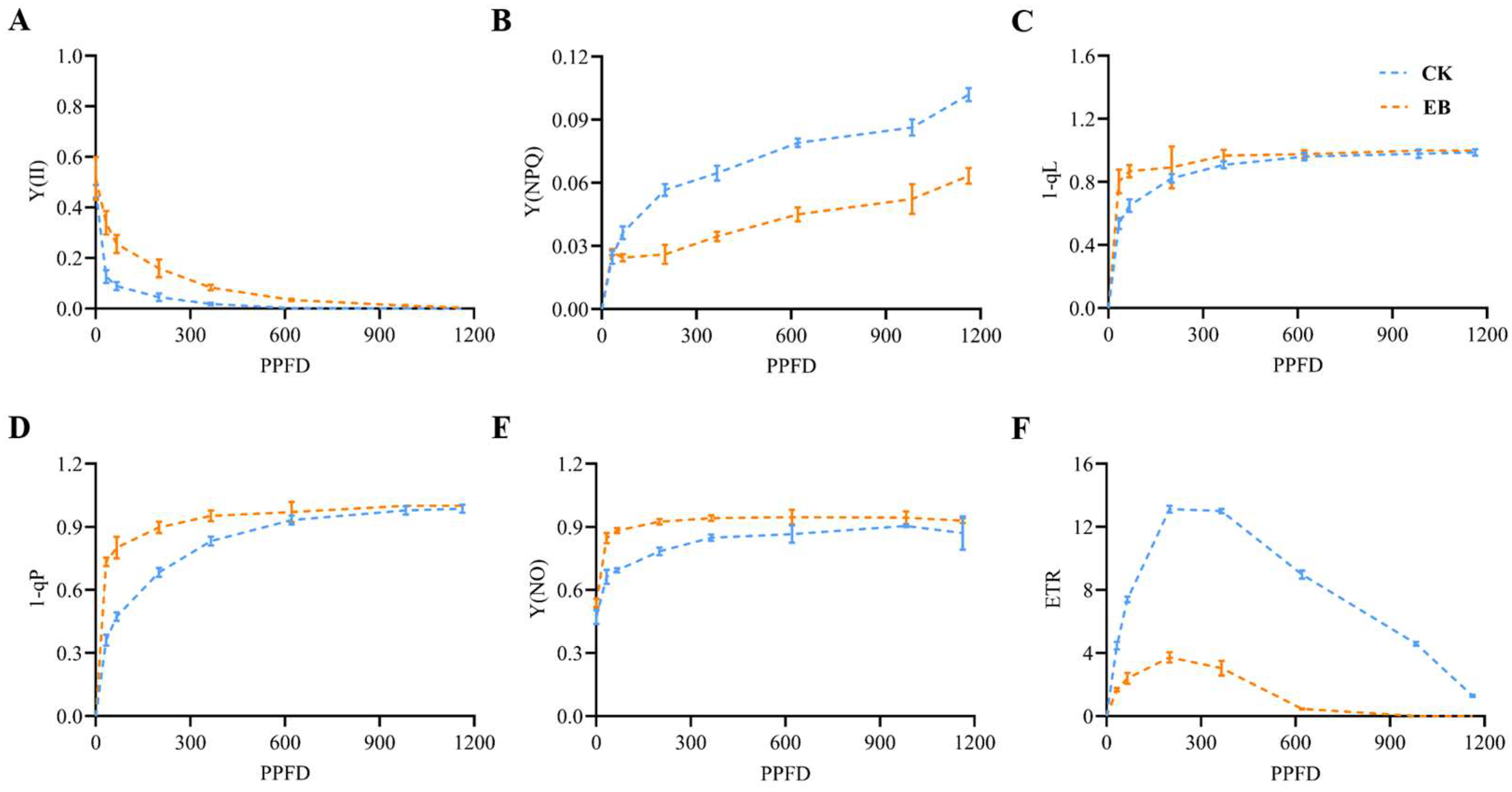 4.4. Analysis of Photosynthetic Parameters