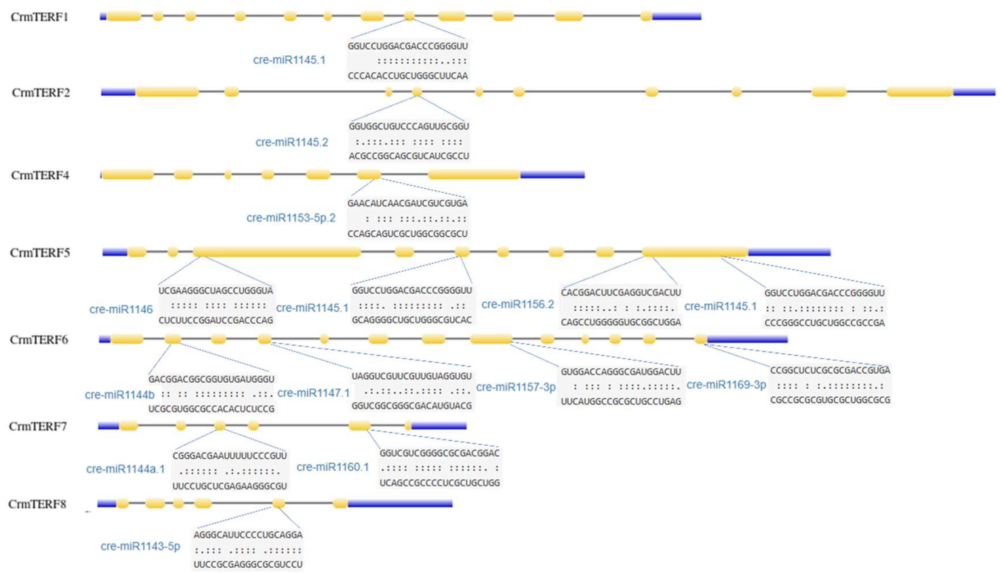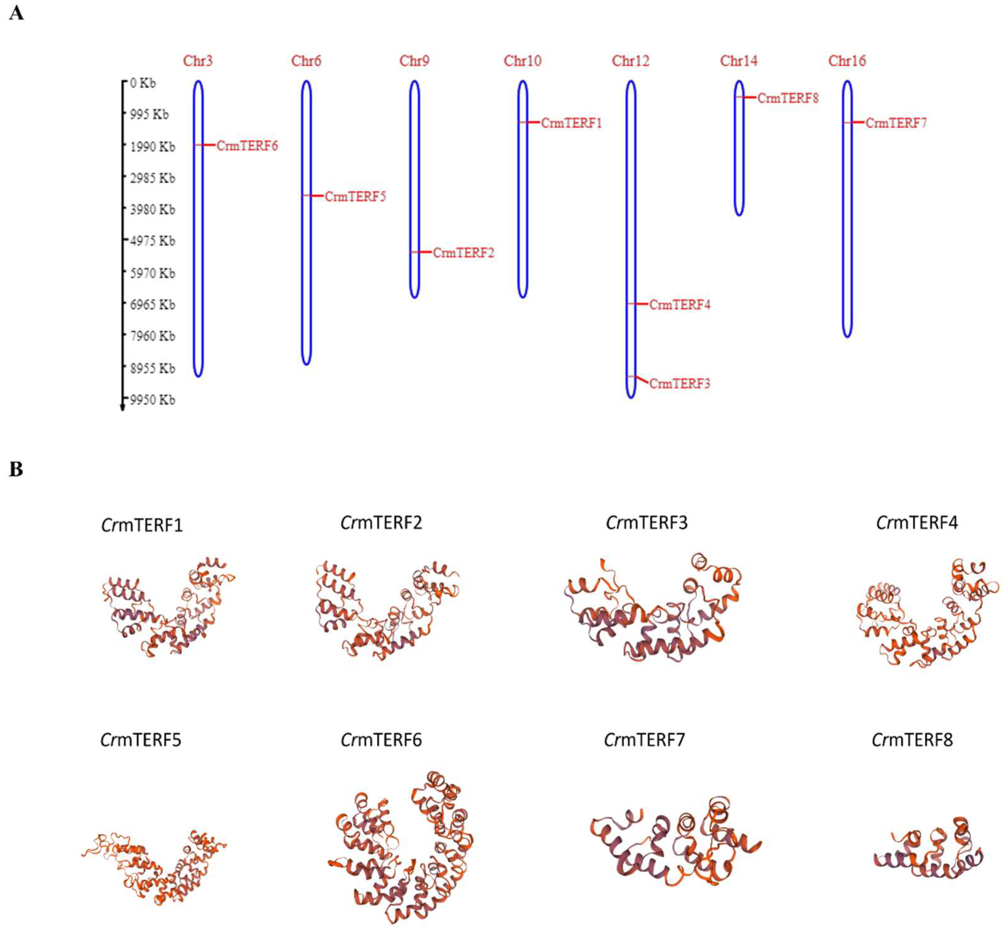 2.3. Identification and Characterization of CrmTERF Genes