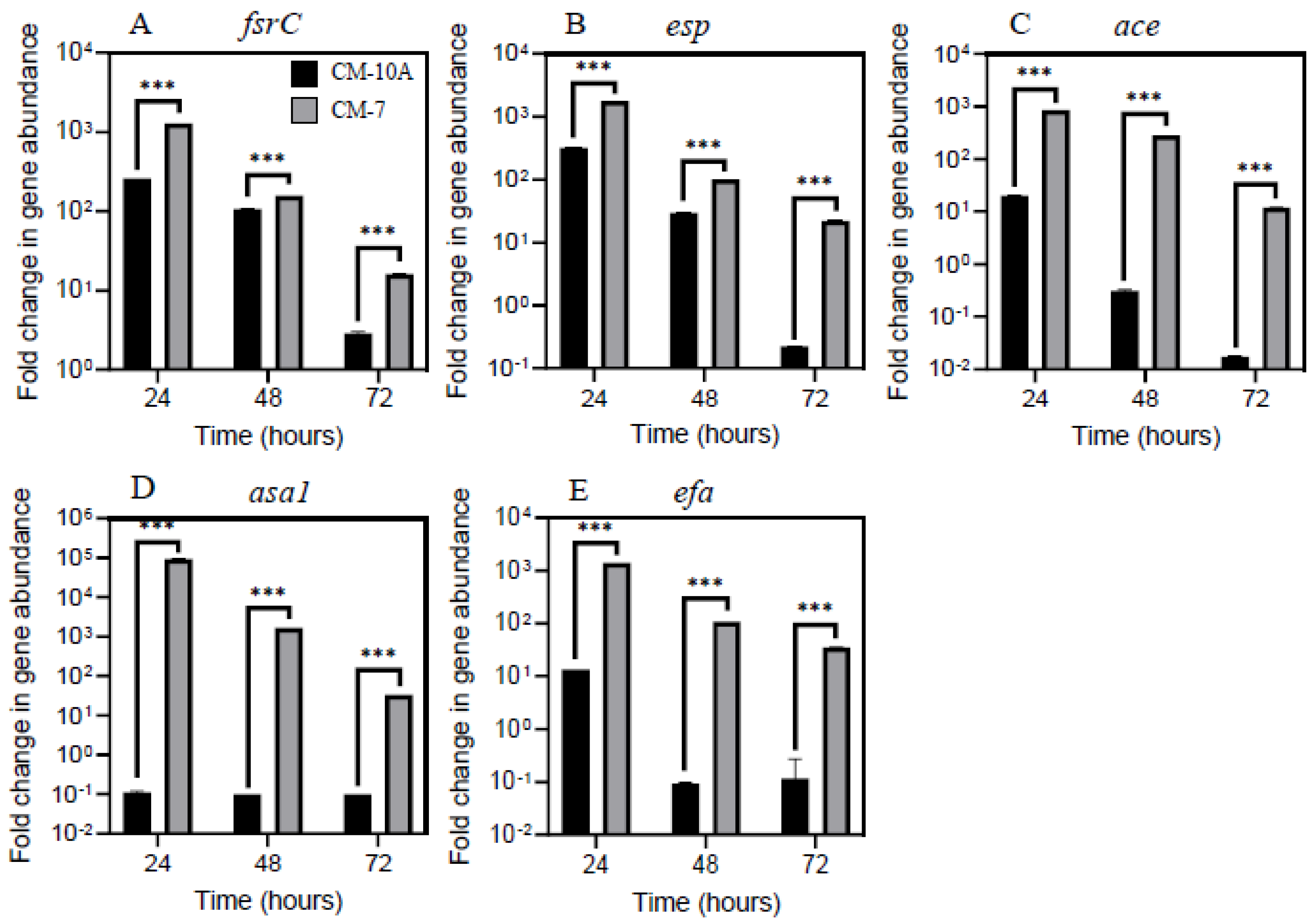 2.5. MCF-7 Breast Cancer Secretomes Enhance Virulence-Associated Gene Abundance in E. faecalis