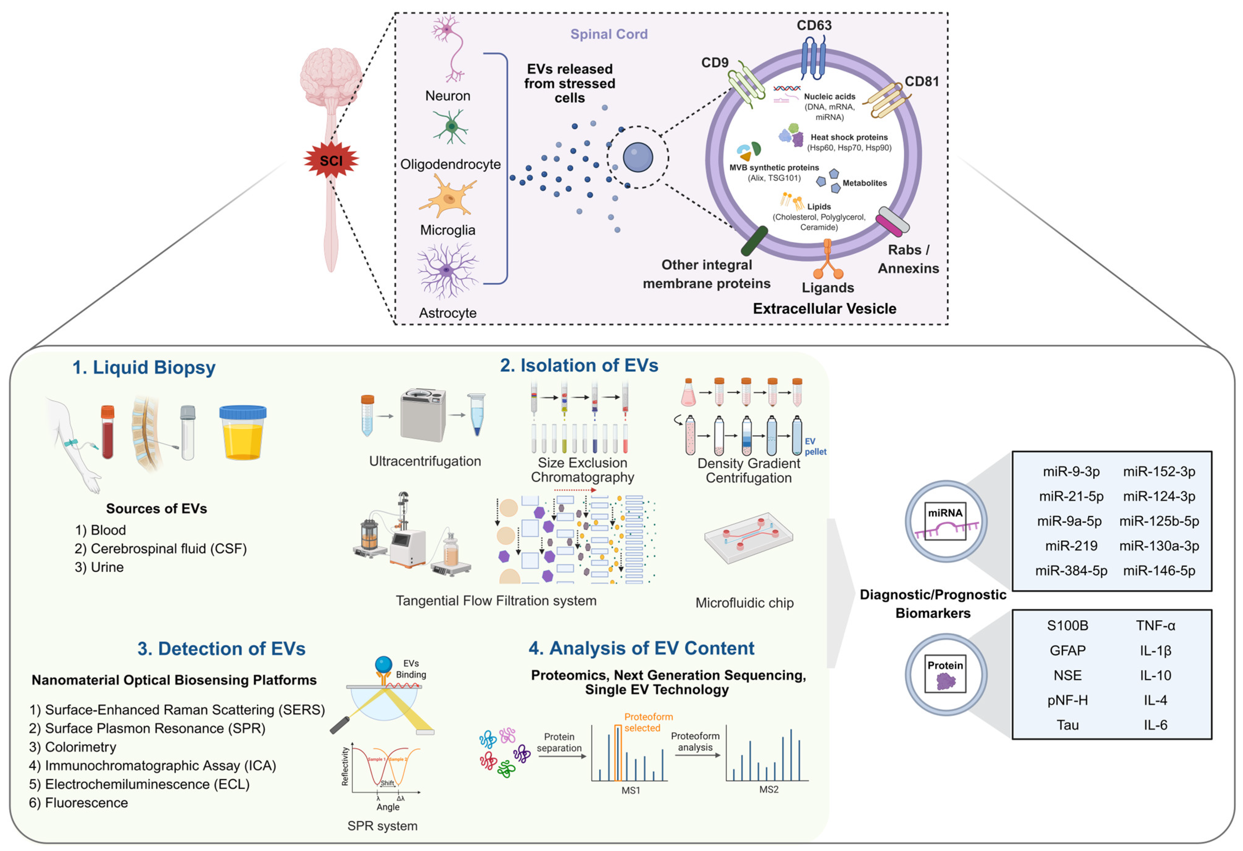 - Dutta, D.; Khan, N.; Wu, J.; Jay, S.M. Extracellular vesicles as an emerging frontier in spinal cord injury pathobiology and therapy. Trends Neurosci. 2021, 44, 492–506. [Google Scholar] [CrossRef]