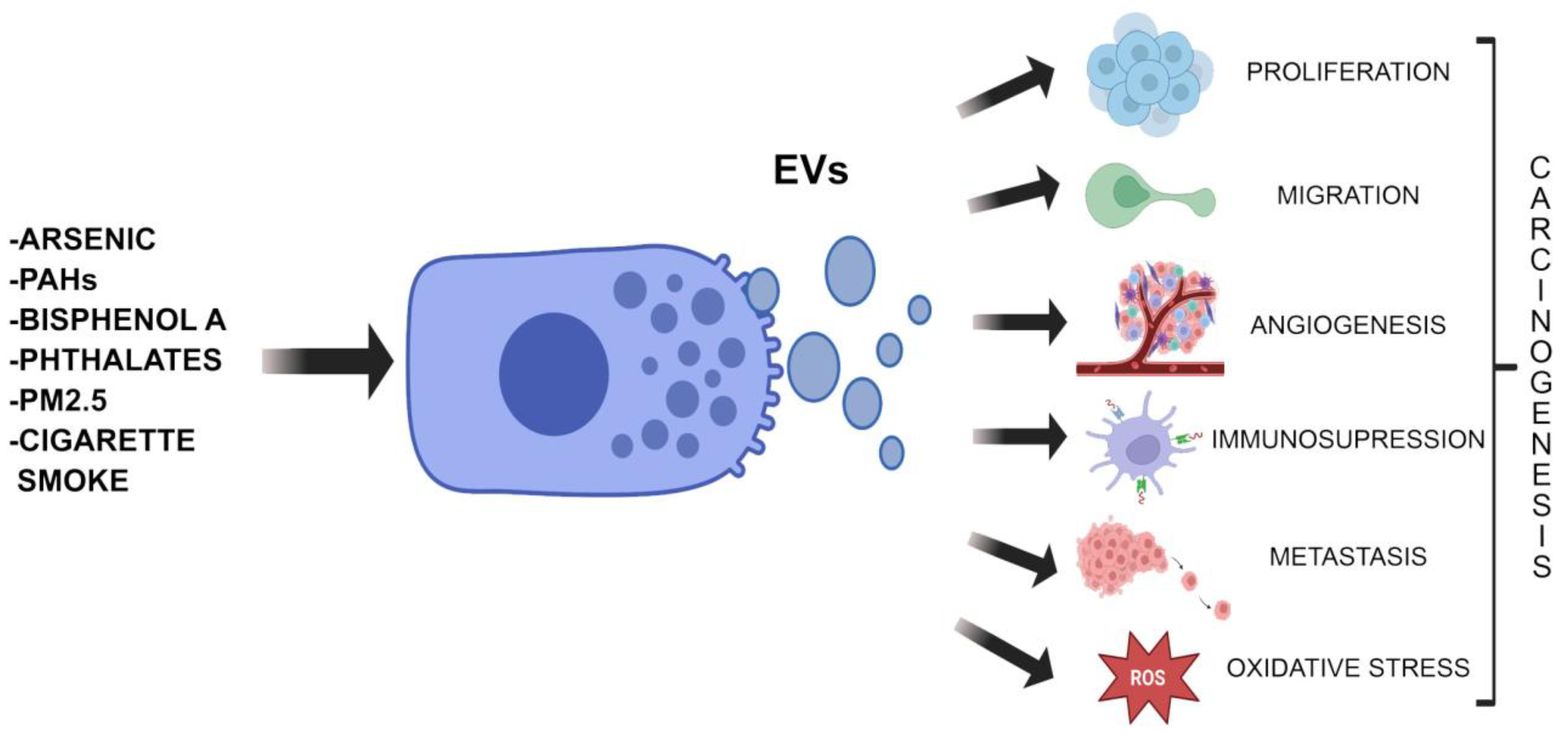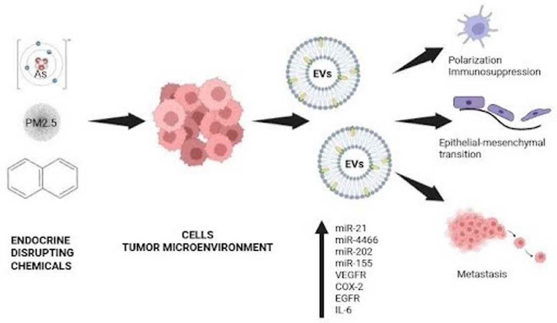Chicago/Turabian StyleBuján, Sol, Sergio Esquivel-Ruiz, Alicia Olivas-Martínez, Noelia V. Miret, Mariana F. Fernández, and Andrea Randi. 2026. "Extracellular Vesicles and Endocrine Disruption: How Environmental Pollutants Modulate the Loading and Release of Extracellular Vesicles for Cancer Promotion and Progression" International Journal of Molecular Sciences 27, no. 5: 2100. https://doi.org/10.3390/ijms27052100
