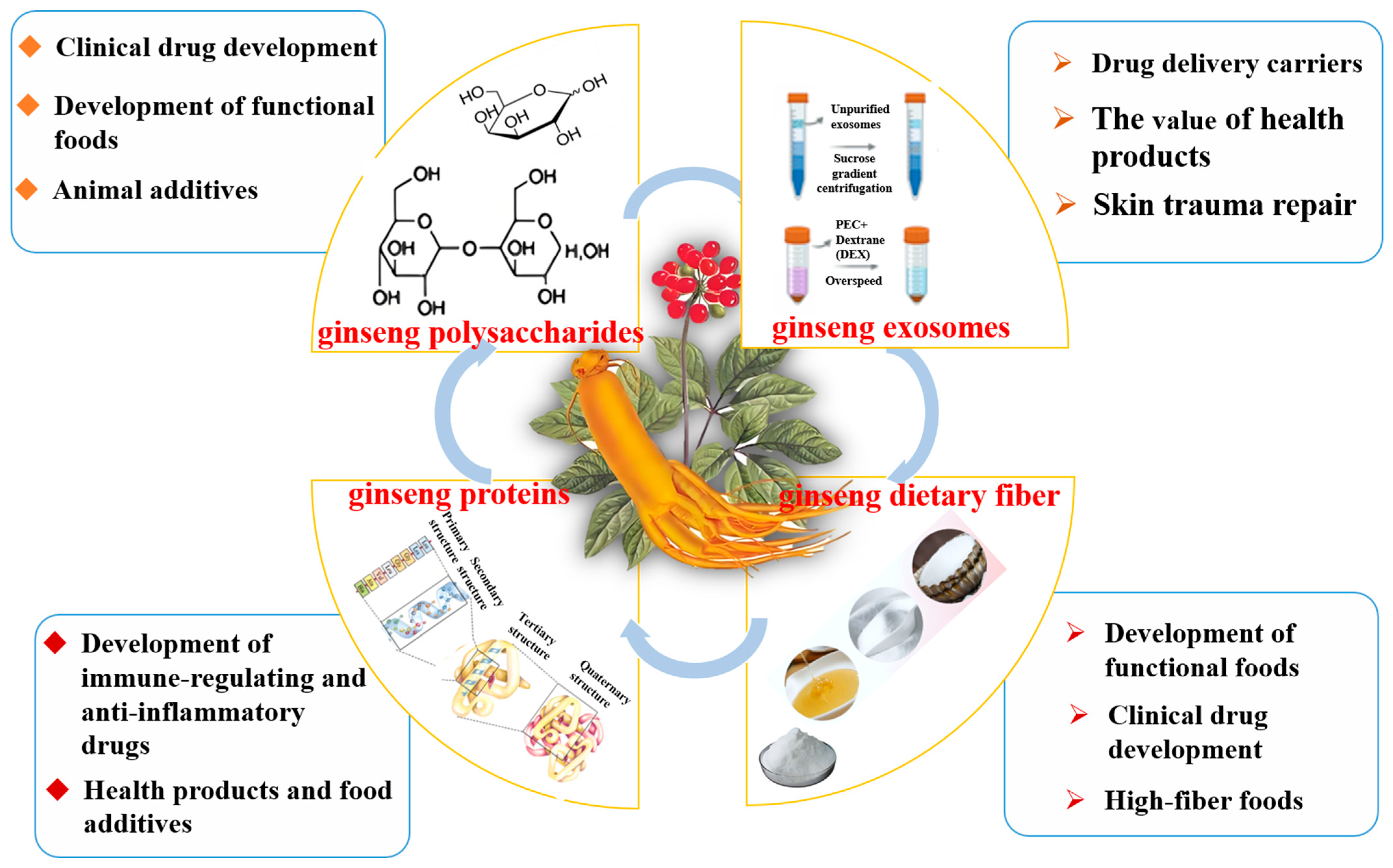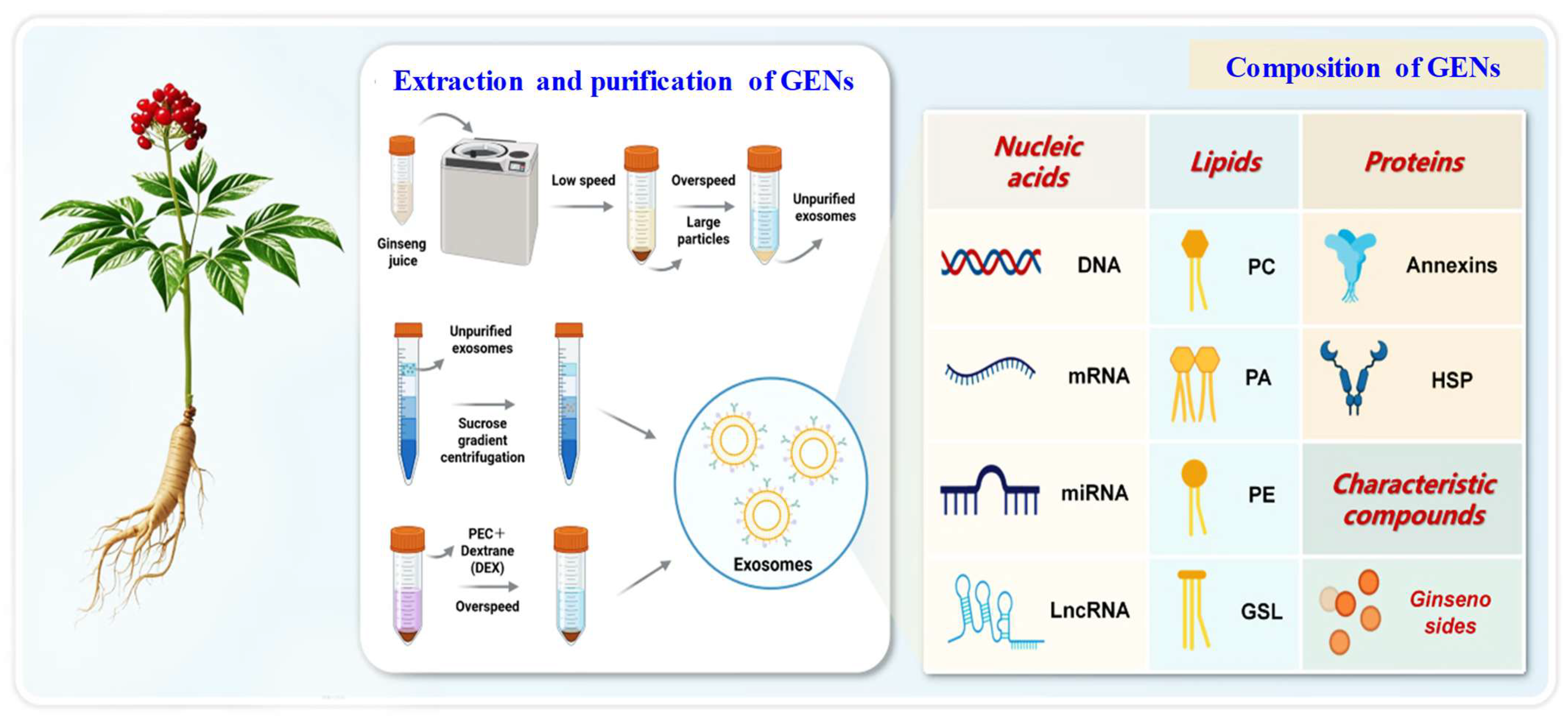 5]. Modern research has revealed that ginseng polysaccharides, pectins, proteins, and exosomes exhibit significant anti-cancer properties, immune-boosting effects, anti-aging benefits, and lipid metabolism regulation capabilities [