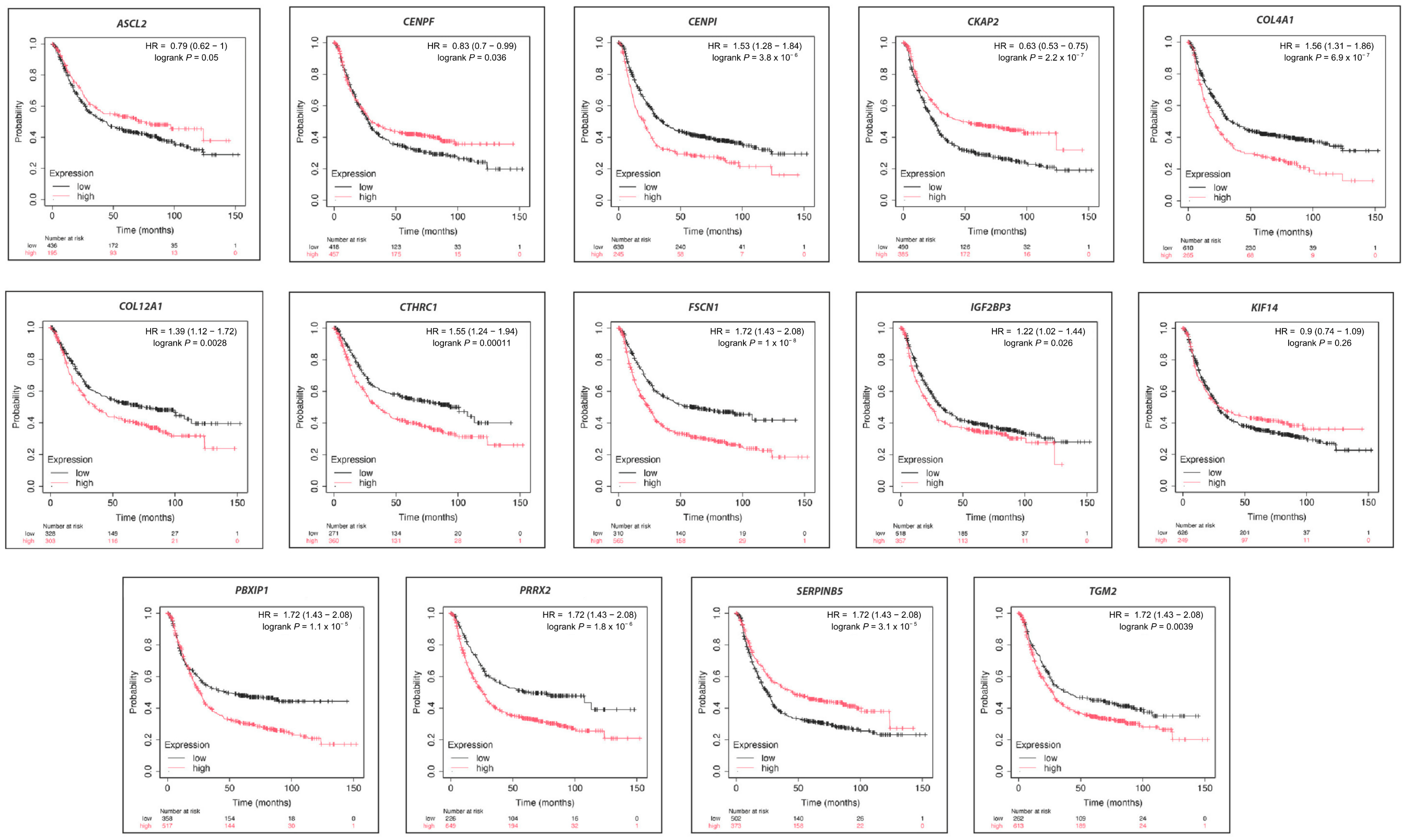 | KIF14 | 0.625 | 0.81 * | 0.55 |