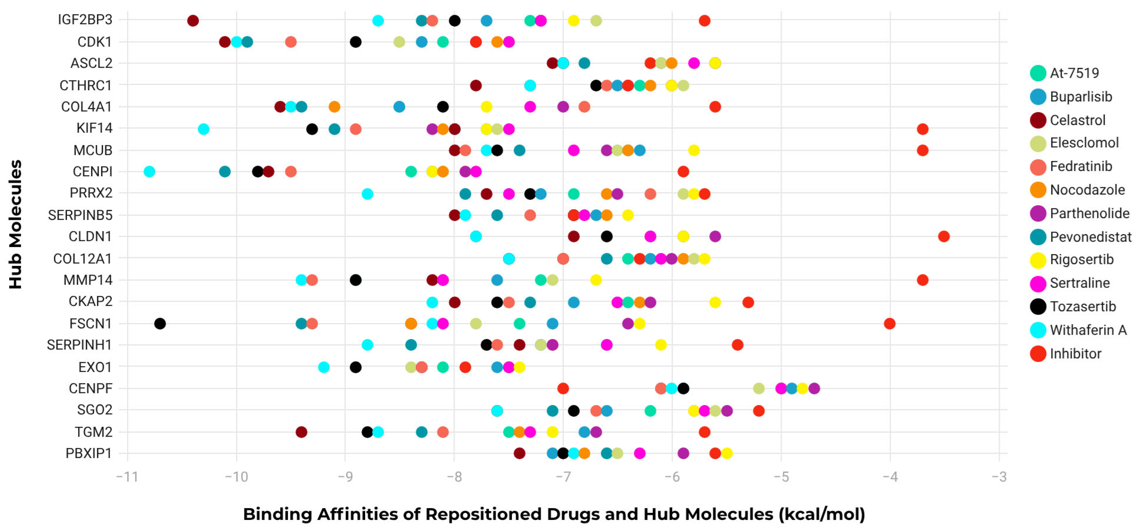 | Hub Molecules | Tozasertib | Pevonedistat | Fedratinib |