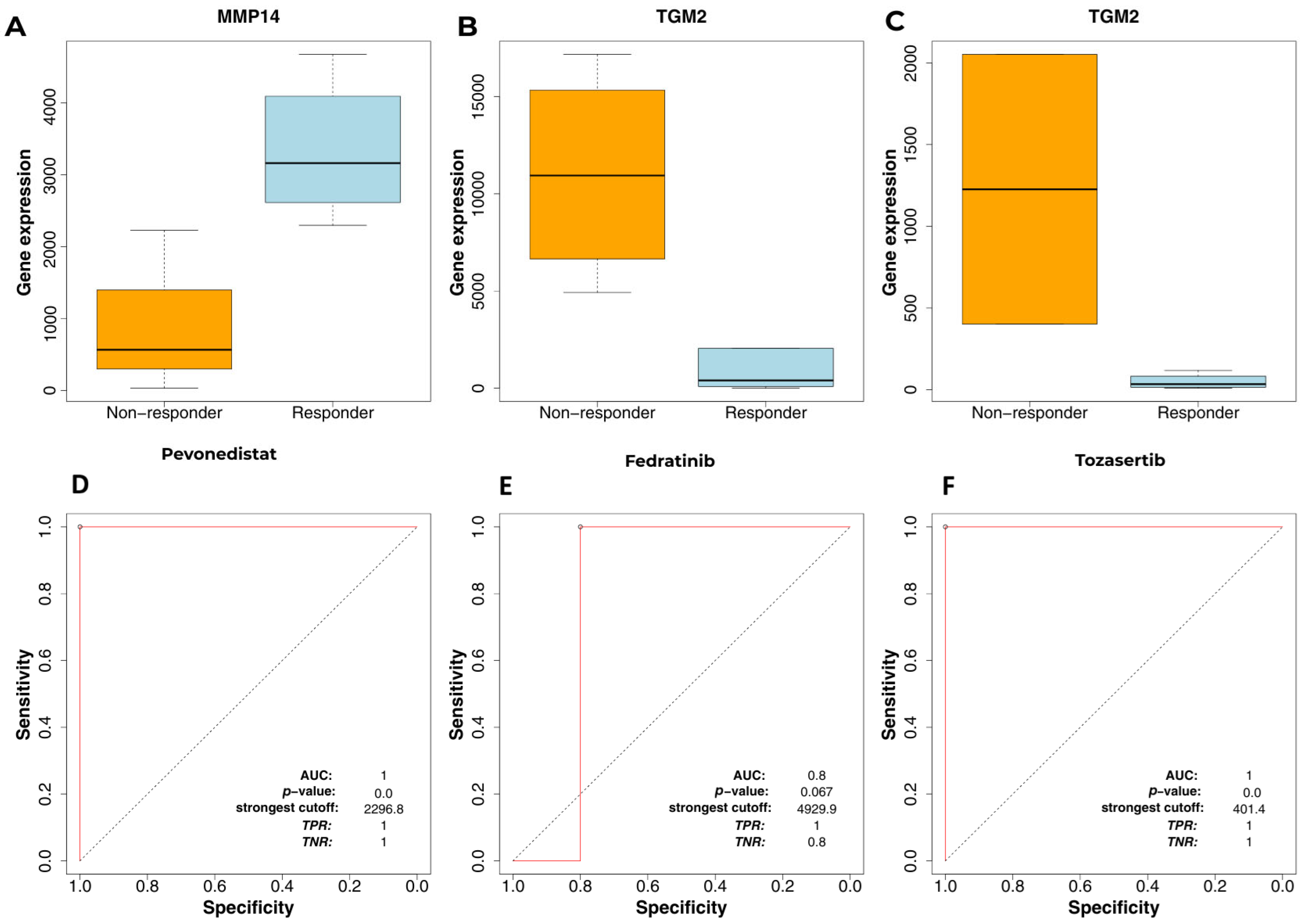 | MMP14 | 0.625 | 1 * | 0.75 * |