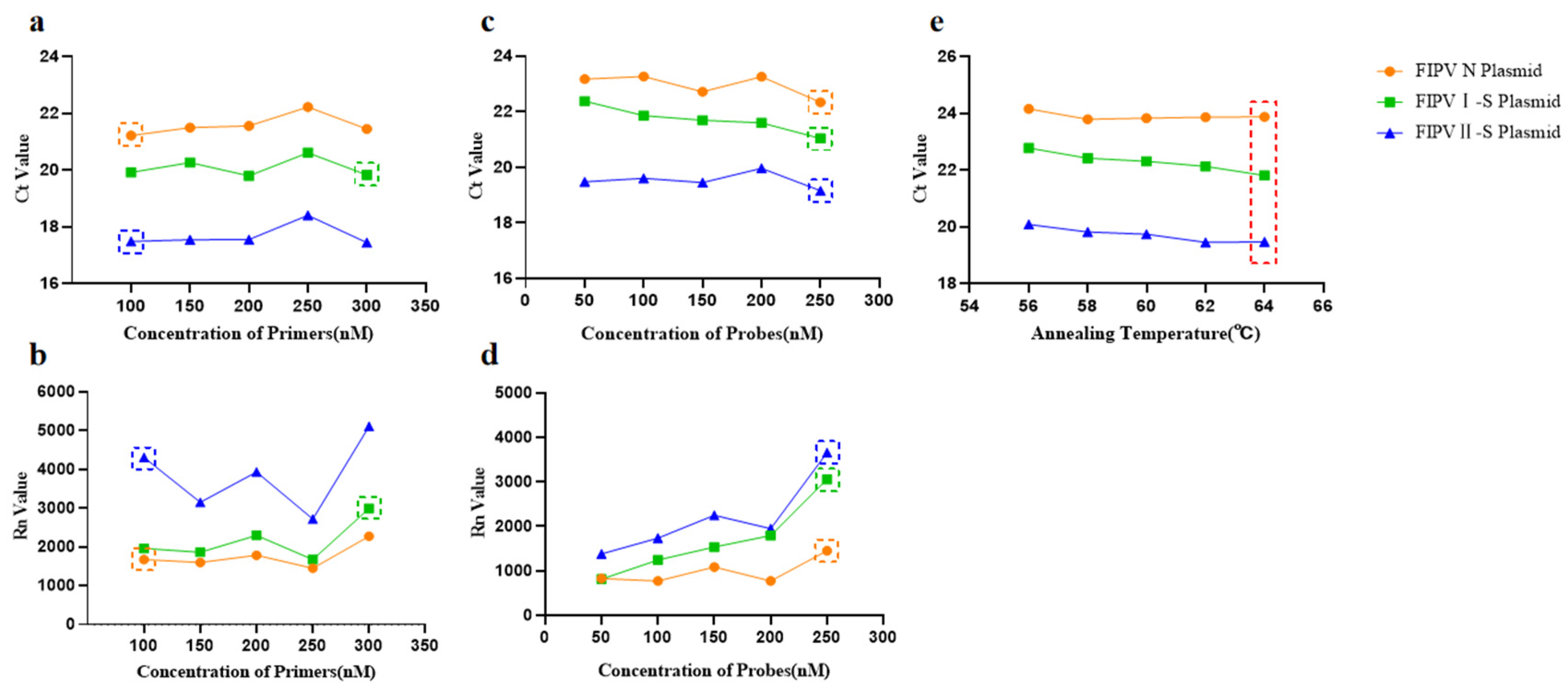 2.1.2. Optimization of Primer–Probe Concentration Parameters