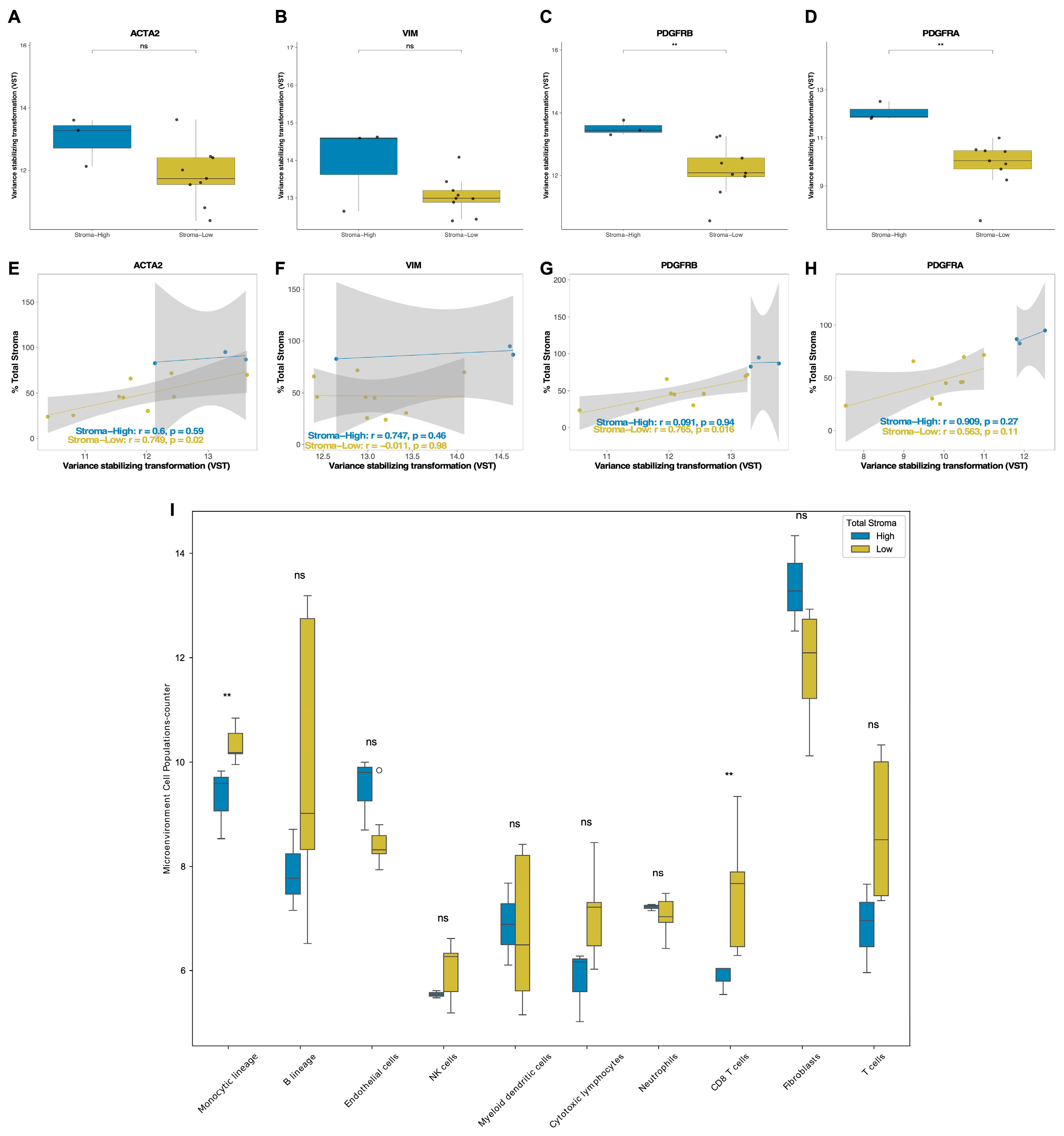2.4. Transcriptional Features Associated with Total Stromal Content