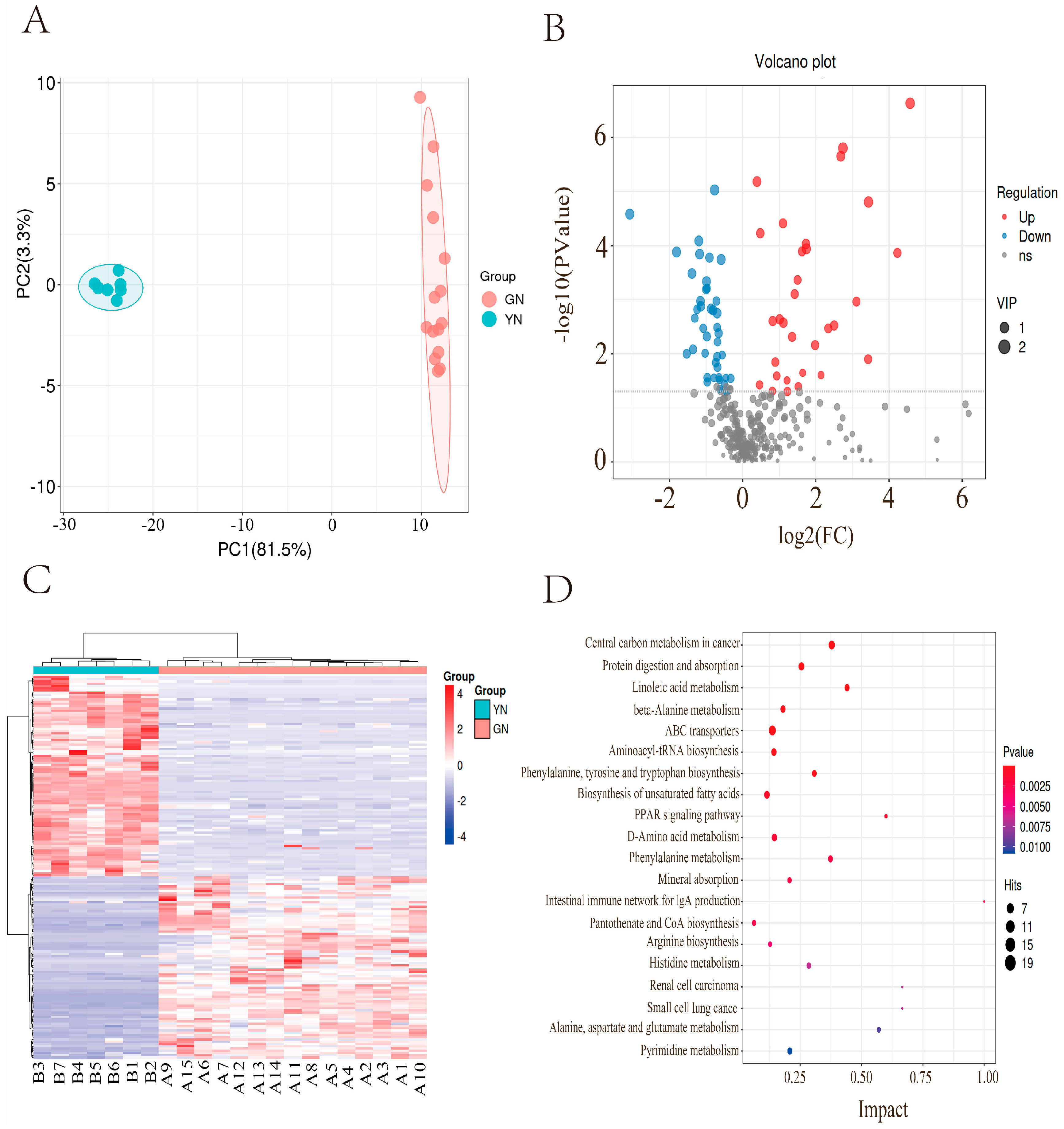 In the steers (YN) group, the fatty acid metabolic pathway was significantly enriched. Studies have demonstrated that rumen fatty acid metabolism is a critical factor influencing changes in muscle fatty acid content in ruminants [