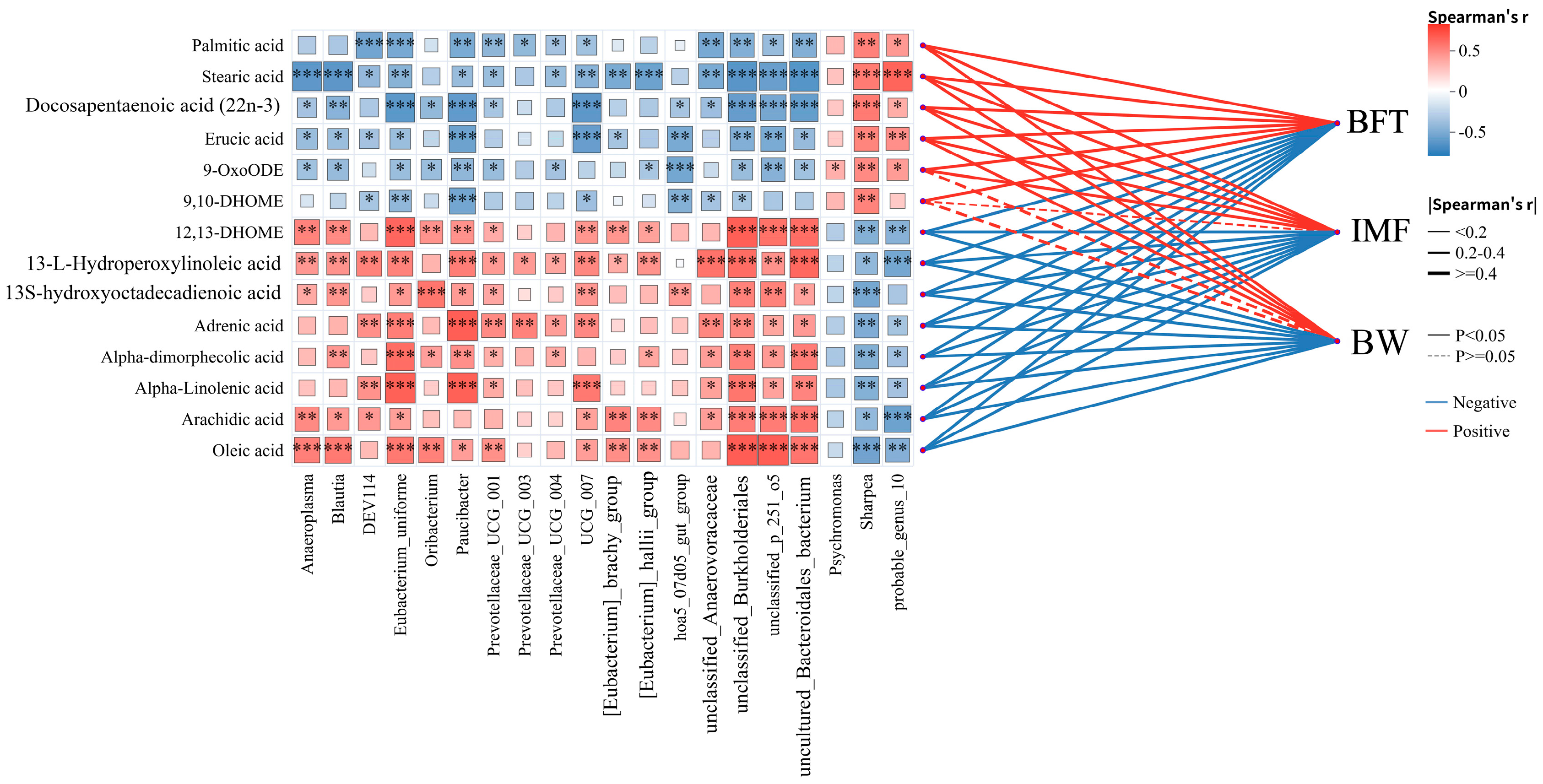 Succinivibrionaceae_ruminis exhibited a positive correlation with intramuscular fat (IMF) content, although the specific mechanisms underlying this relationship require further investigation. Additionally,