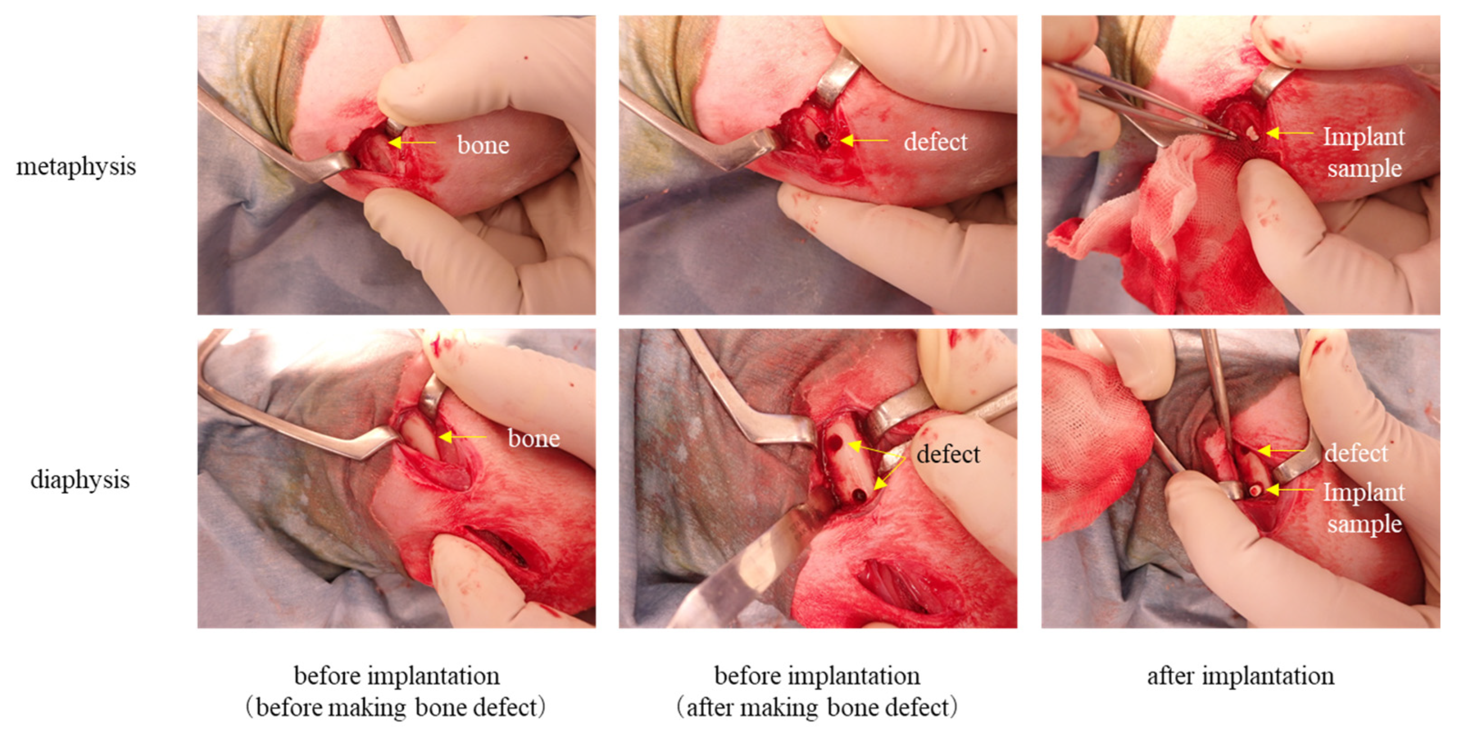 | β-TCP(40) | 1.71 | 38.5 | metaphysis diaphysis | ϕ4 × 7 ϕ3 × 5 |