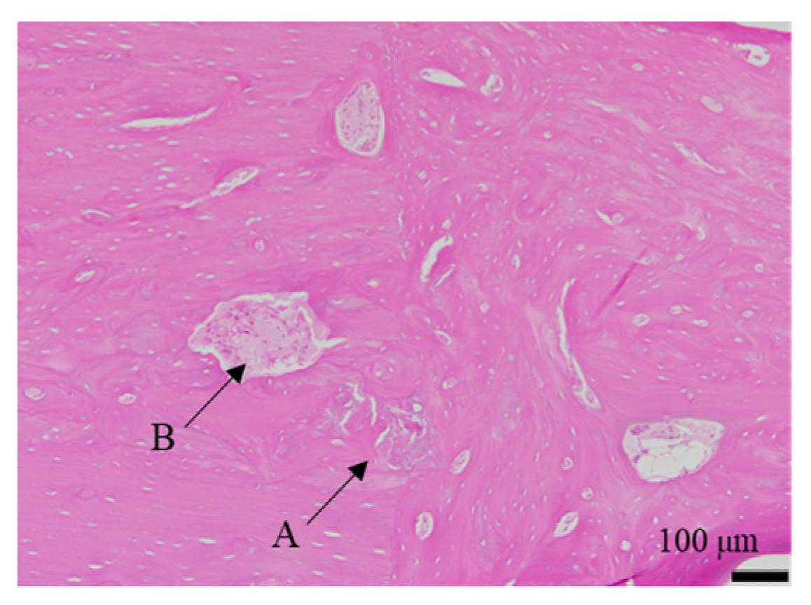 - Dersot, J.M.; Colombier, M.L.; Lafont, J.; Baroukh, B.; Septier, D.; Saffar, J.L. Multinucleated giant cells elicited around hydroxyapatite particles implanted in craniotomy defects are not osteoclasts. Anat. Rec. 1995, 242, 166–176. [Google Scholar] [CrossRef]
