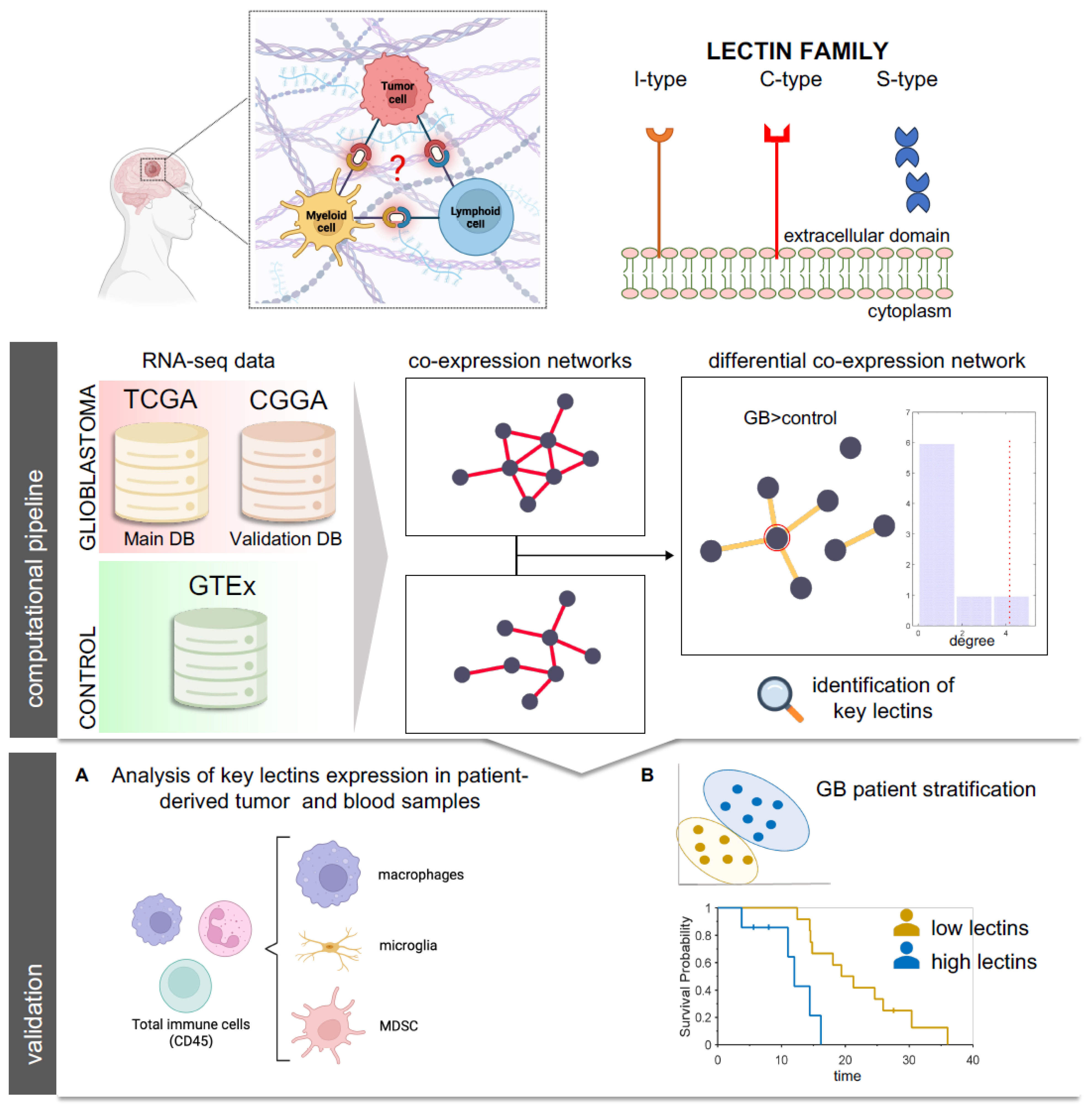 - Pace, A.; Scirocchi, F.; Napoletano, C.; Zizzari, I.G.; D’angelo, L.; Santoro, A.; Nuti, M.; Rahimi, H.; Rughetti, A. Glycan-Lectin Interactions as Novel Immunosuppression Drivers in Glioblastoma. Int. J. Mol. Sci. 2022, 23, 6312. [Google Scholar] [CrossRef]