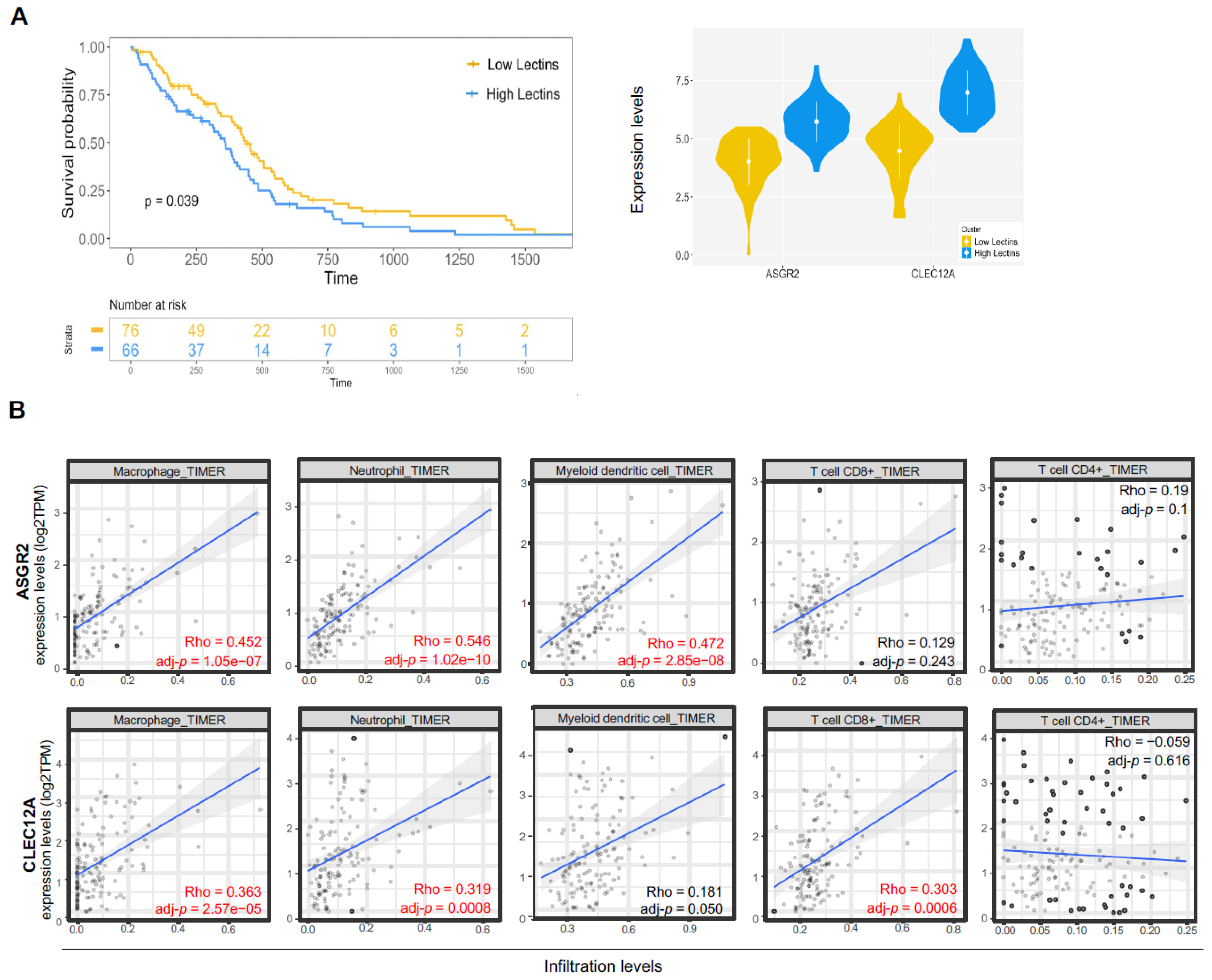 2.2. ASGR2 and CLEC12A Are Associated with Survival and Immune Infiltrate in GB