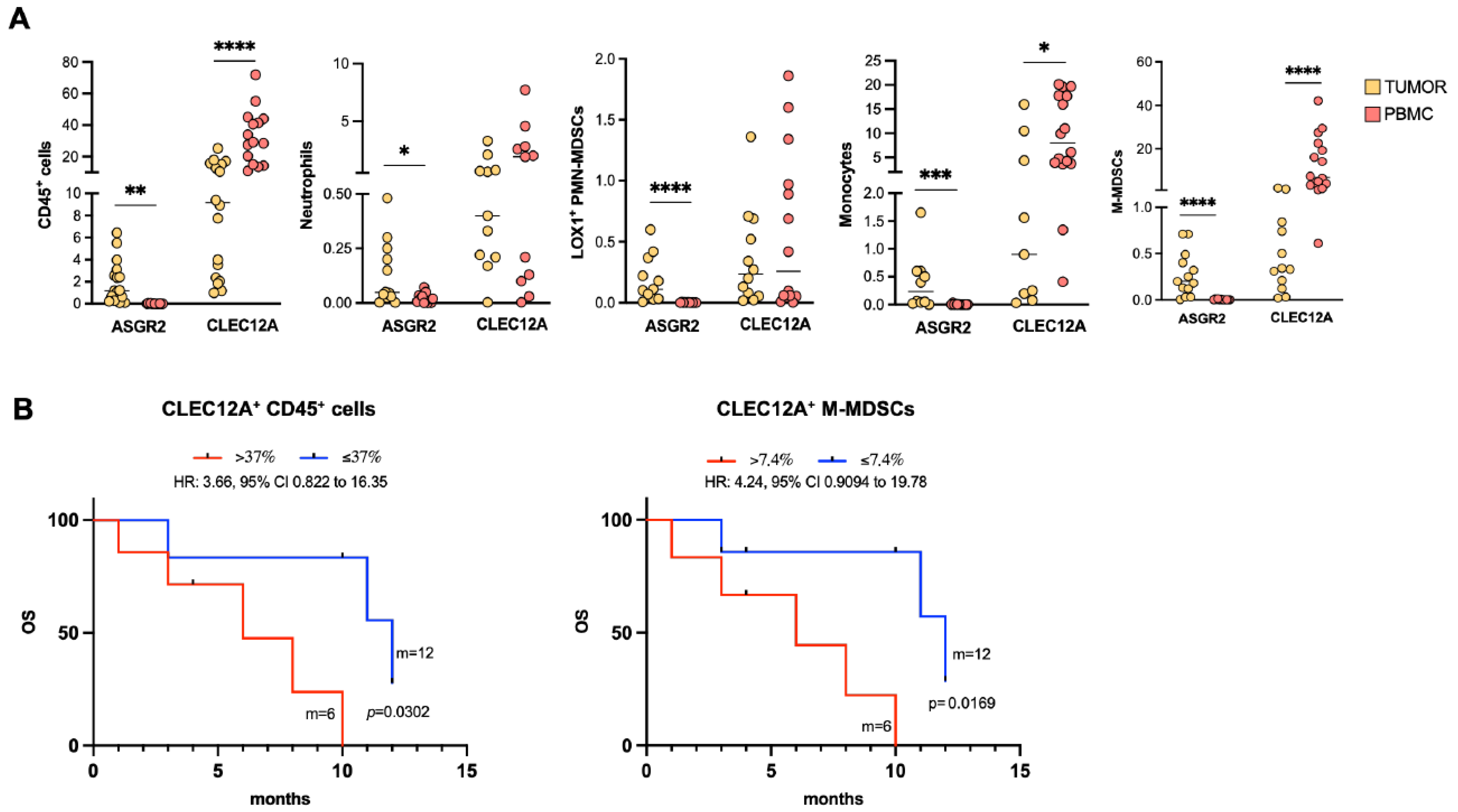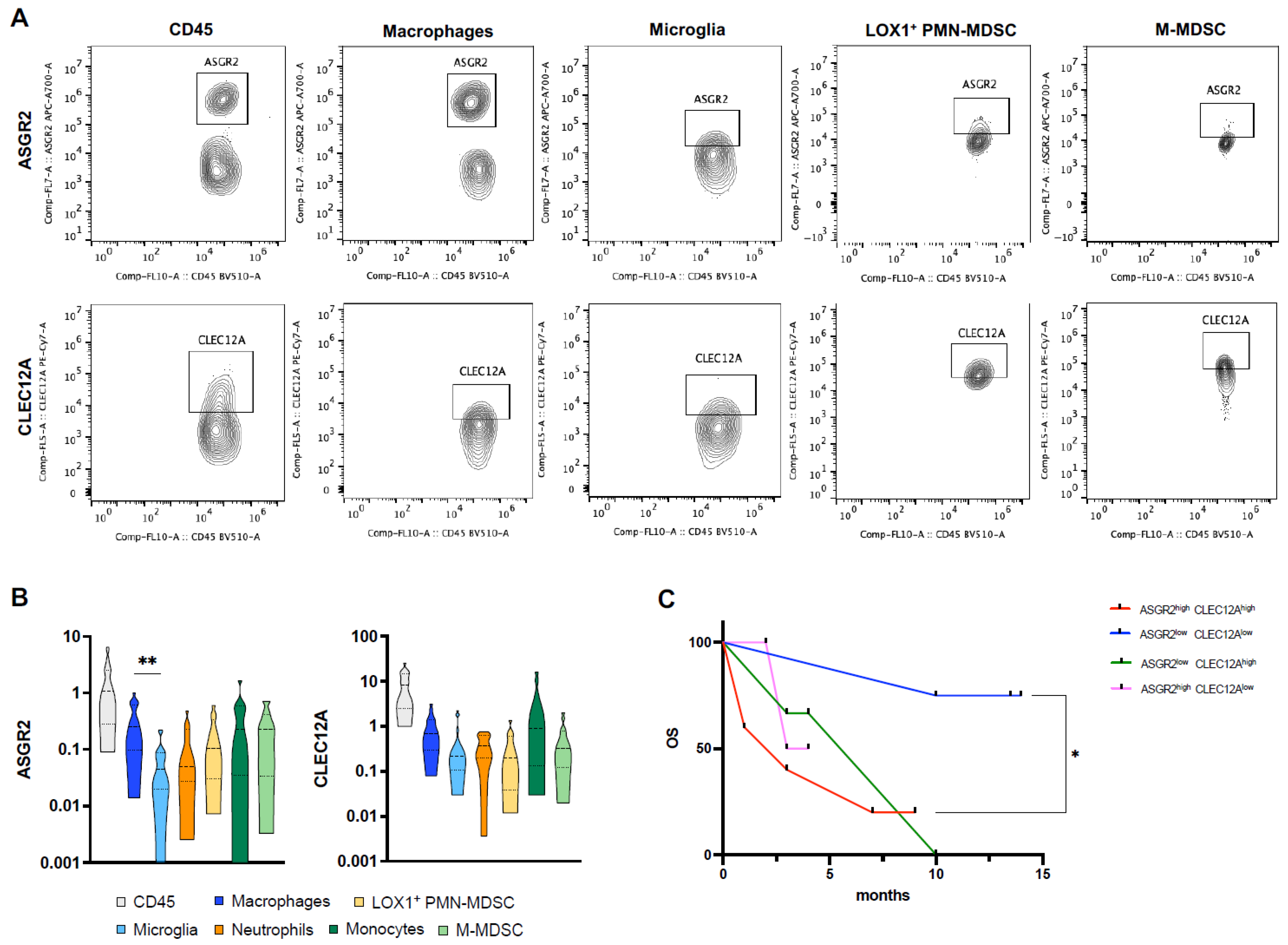 2.4. ASGR2 and CLEC12A Display a Distinct Distribution Profile on Circulating Myeloid Cells