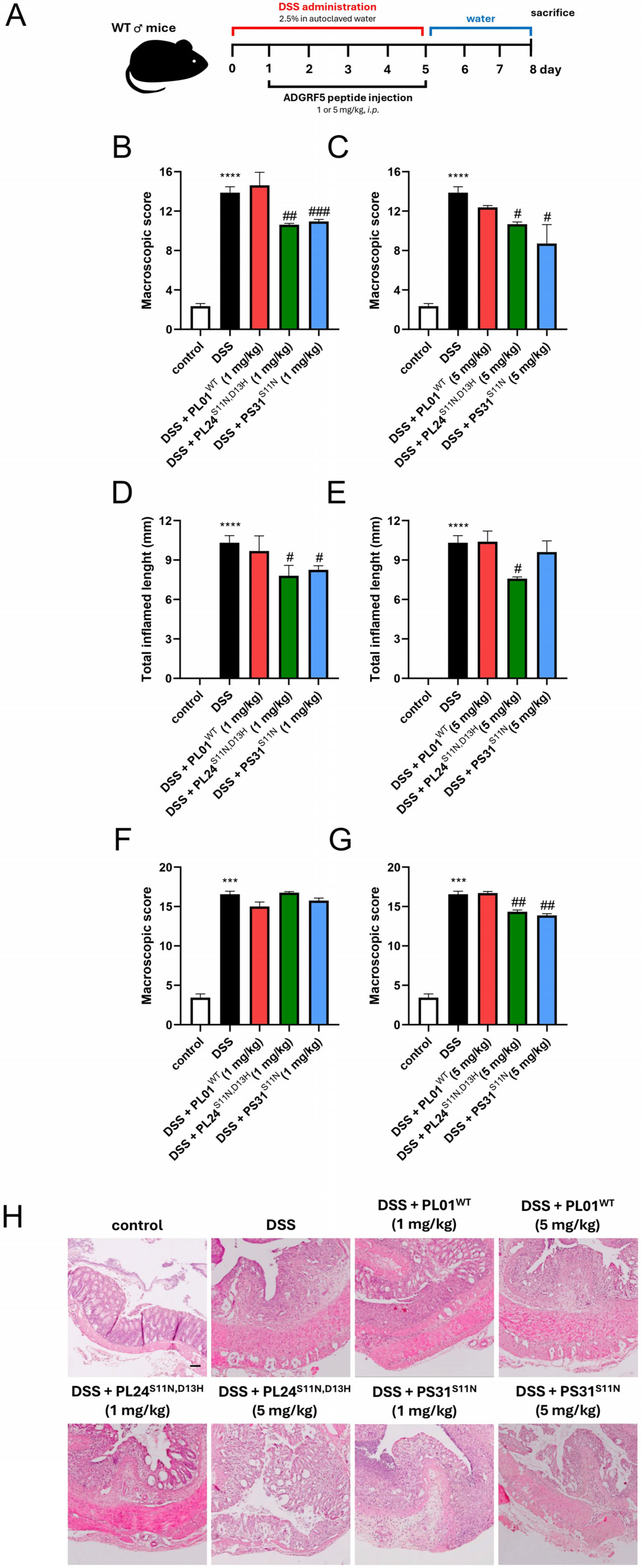 2.5. ADGRF5 Agonists with Modified Stachel Sequence Prevent Colitis Progression
