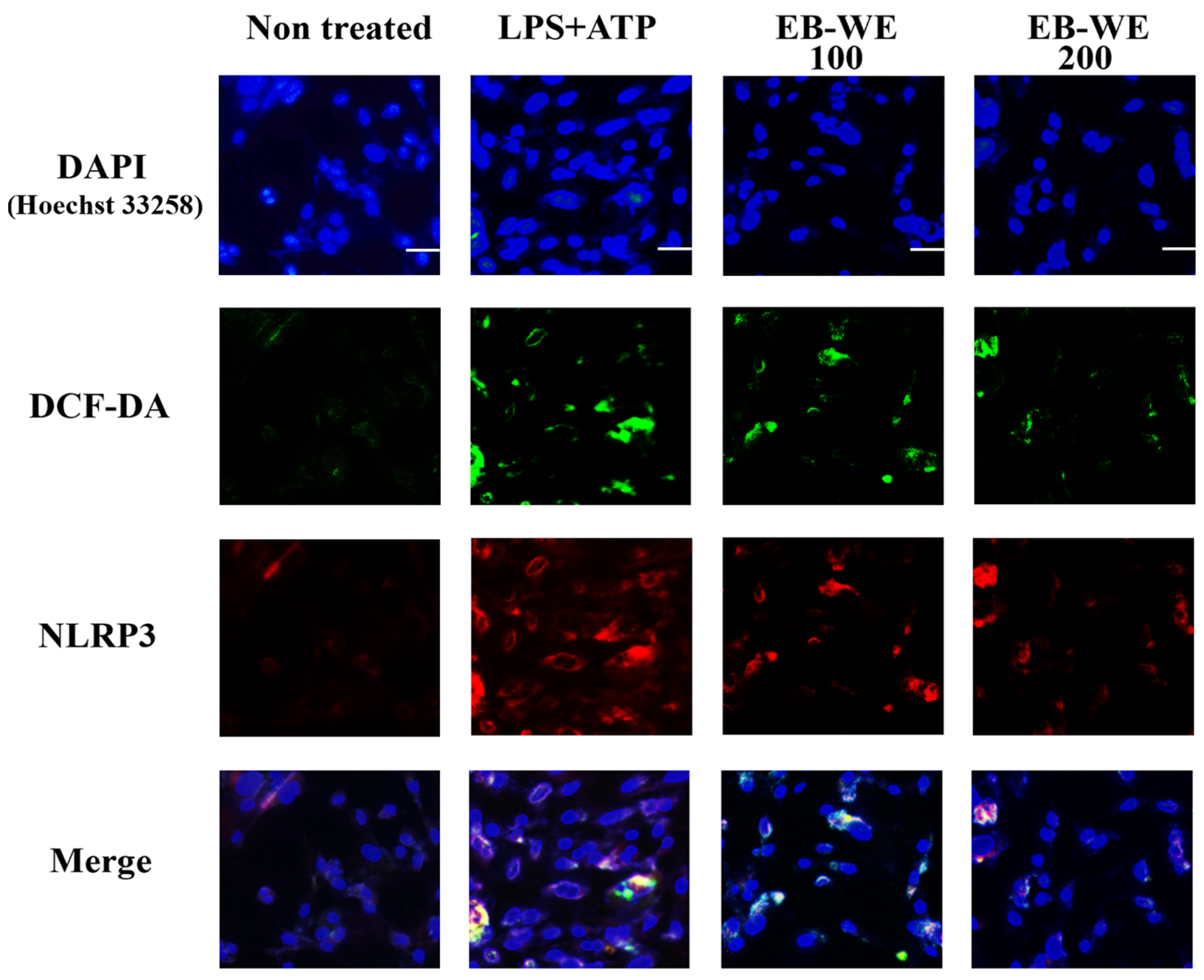 2.4. EB-WE Attenuates ROS-Mediated NLRP3 Inflammasome Activation in BMDMs