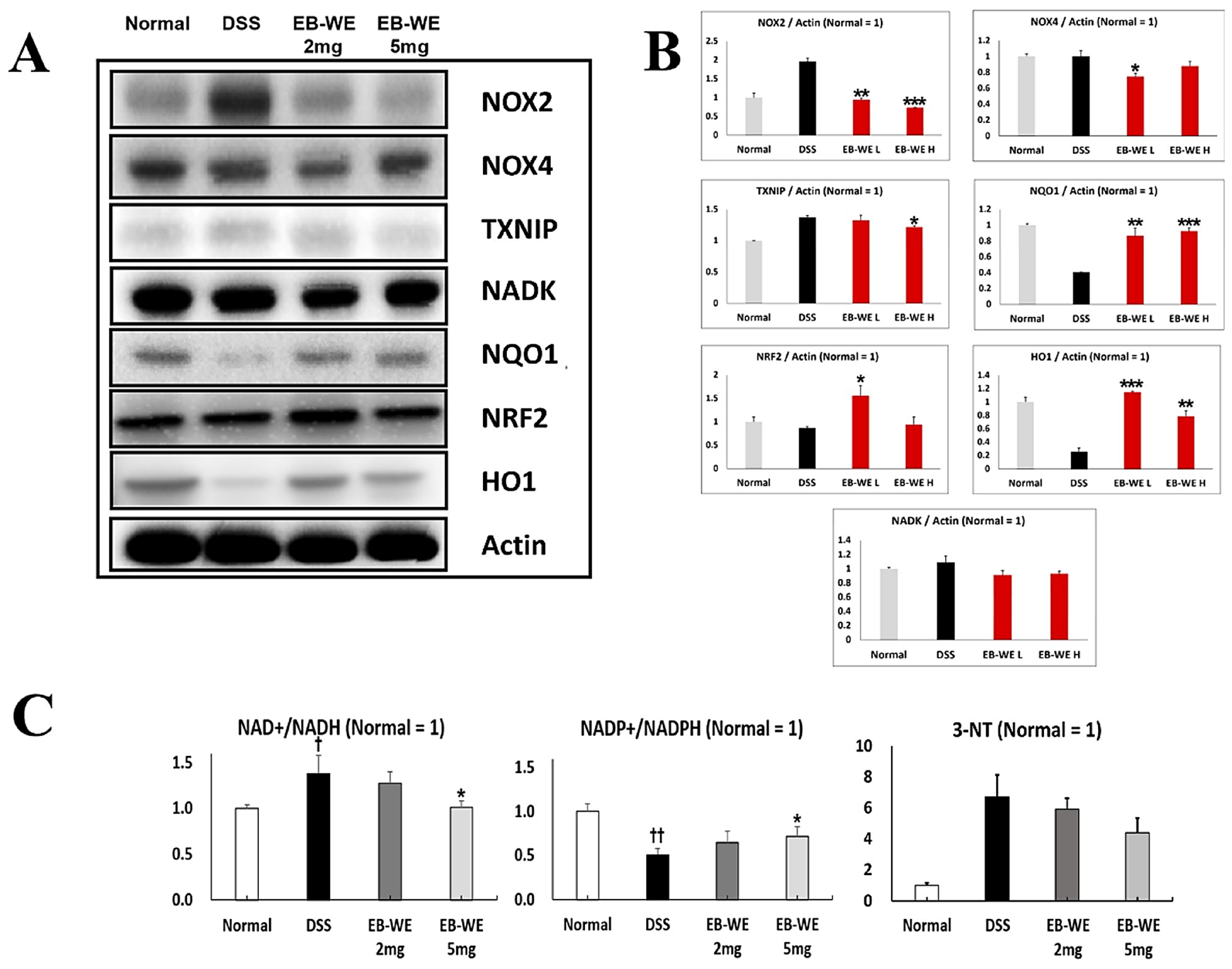 2.8. Modulation of Redox Regulatory Proteins by EB-WE in Colon Tissue of the IBD Model