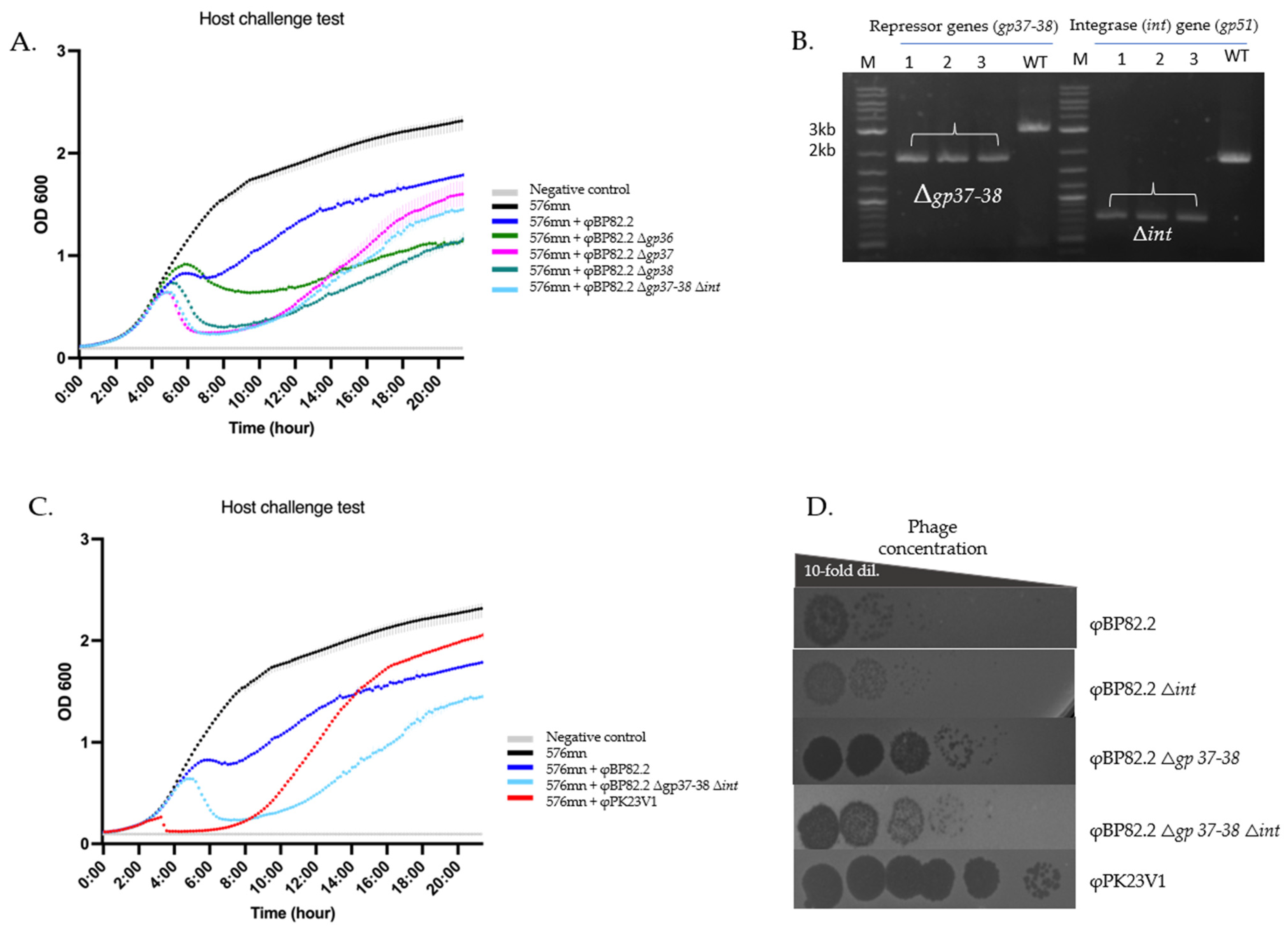 3.2. The Integrase Gene Is Required for Phage Excision but Does Not Enhance Lytic Activity