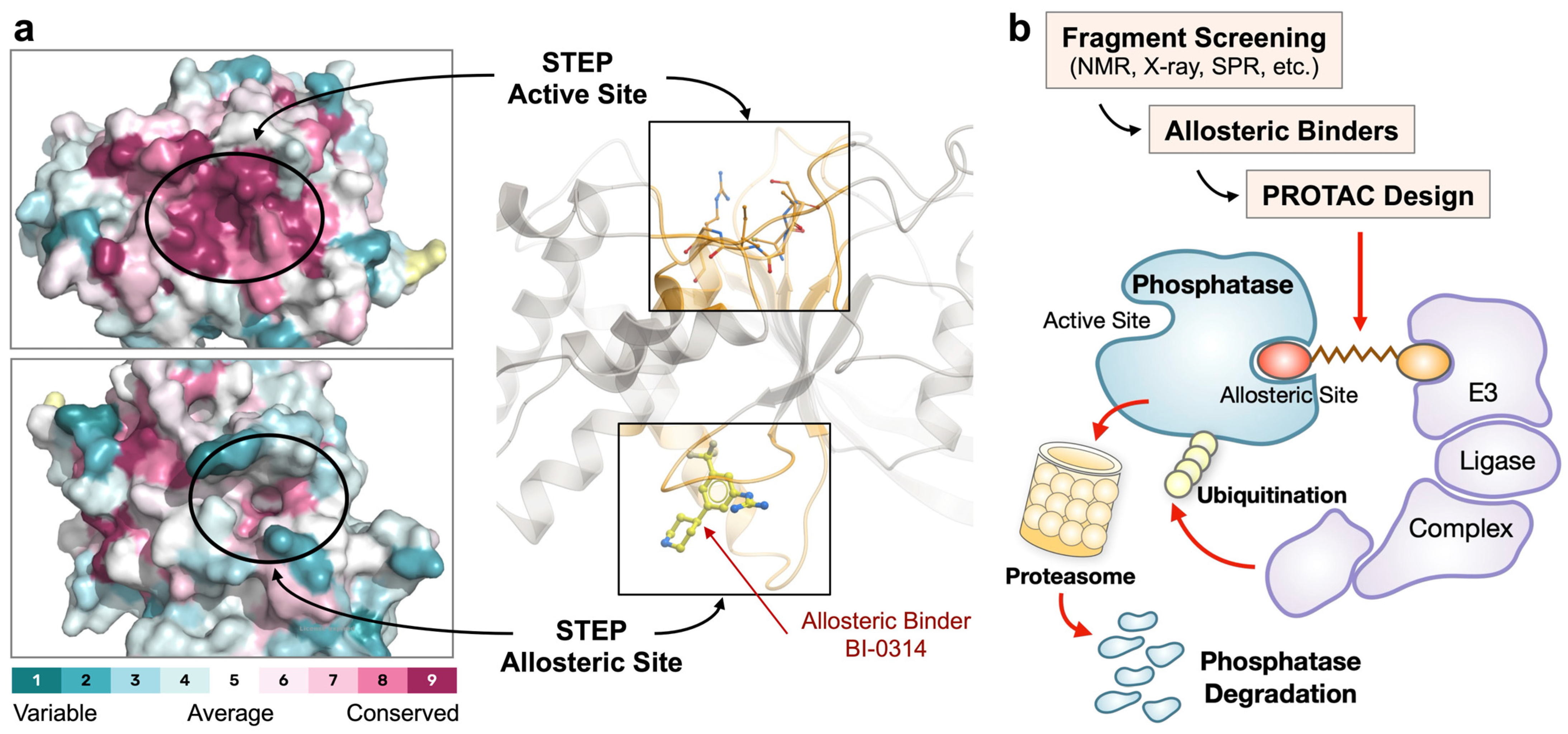 - Tautermann, C.S.; Binder, F.; Buttner, F.H.; Eickmeier, C.; Fiegen, D.; Gross, U.; Grundl, M.A.; Heilker, R.; Hobson, S.; Hoerer, S.; et al. Allosteric Activation of Striatal-Enriched Protein Tyrosine Phosphatase (STEP, PTPN5) by a Fragment-like Molecule. J. Med. Chem. 2019, 62, 306–316. [Google Scholar] [CrossRef] [PubMed]