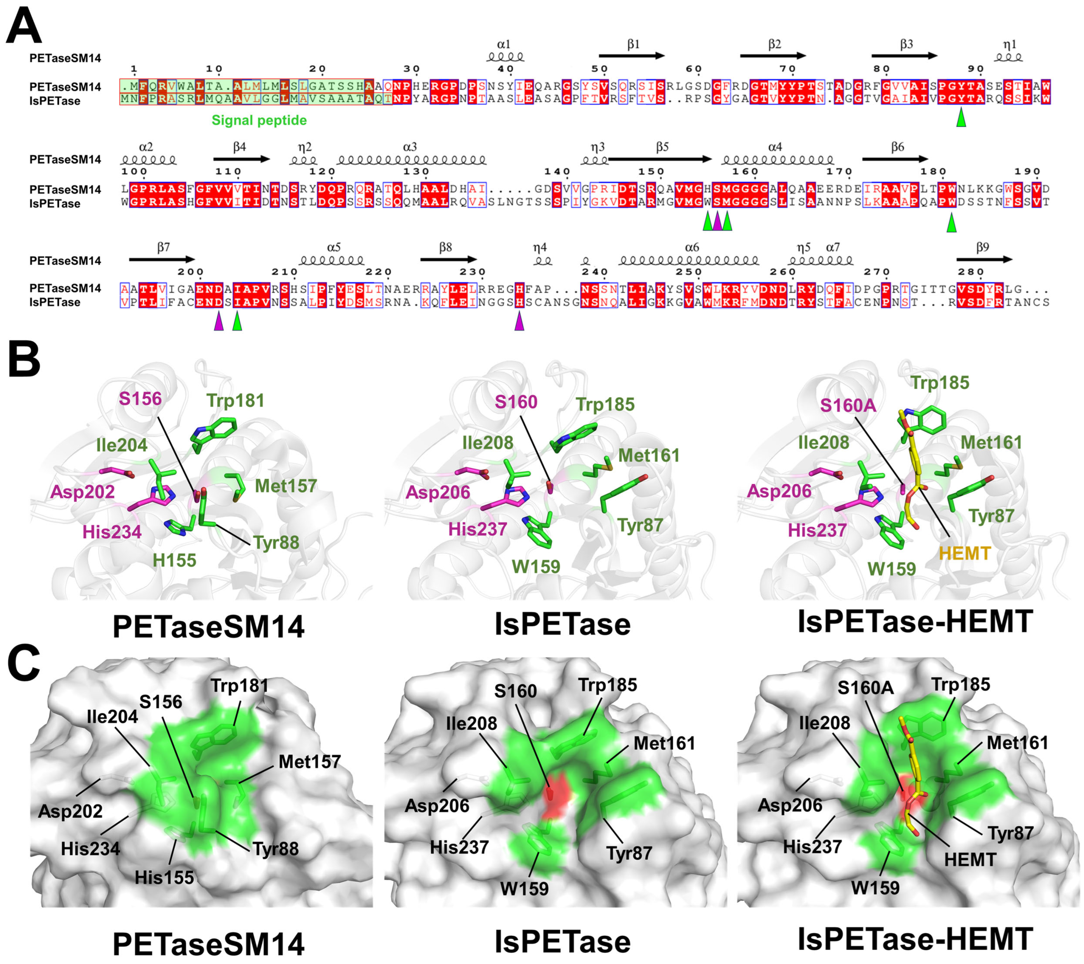 2.1. Revisiting the Structures of PETaseSM14 and IsPETase