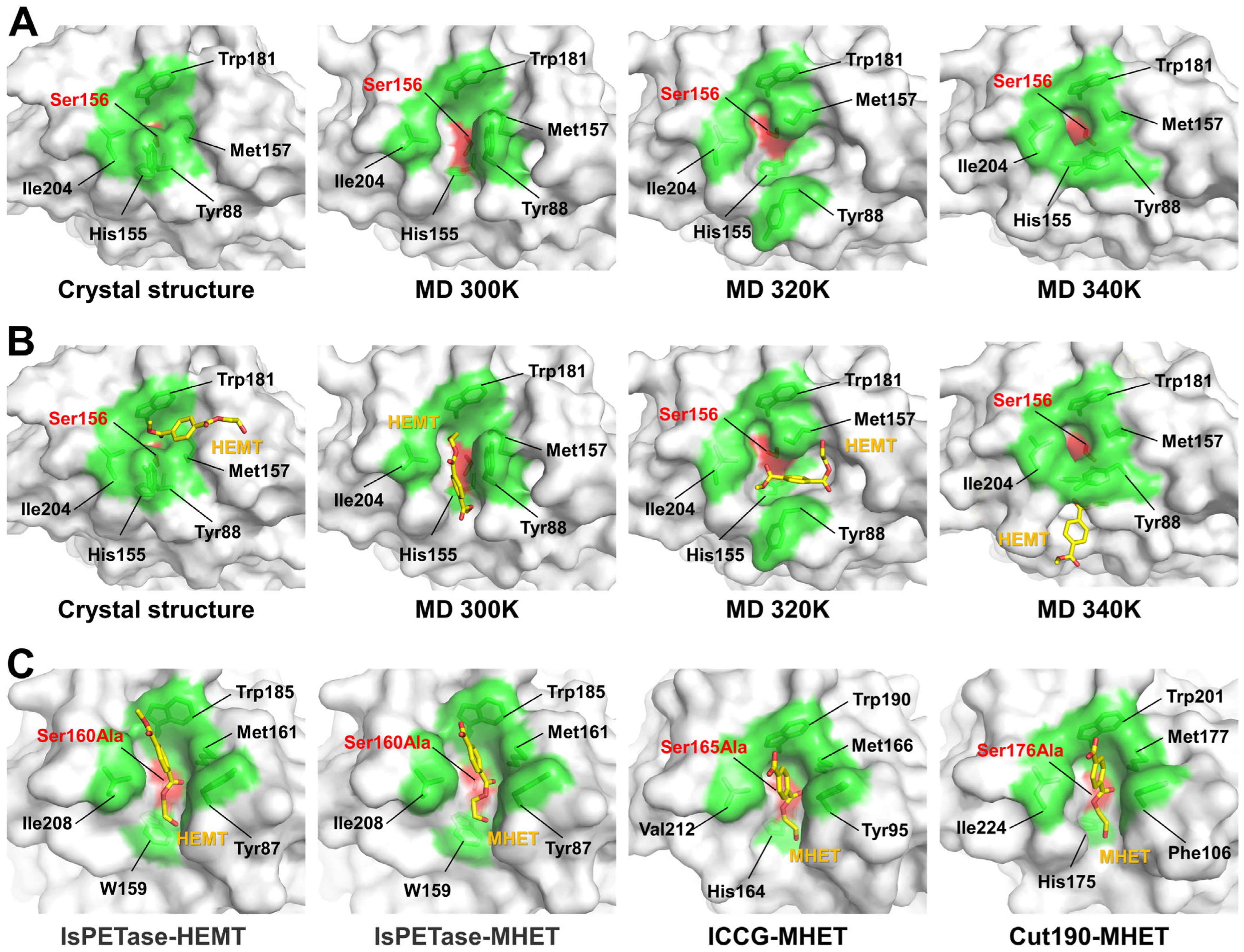 2.4. HEMT Docking of the Experimental and MD Structures of PETaseSM14