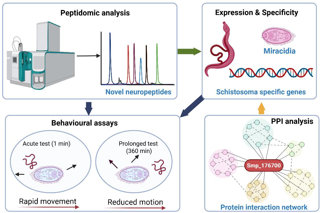 - Fogarty, C.E.; Suwansa-Ard, S.; Phan, P.; McManus, D.P.; Duke, M.G.; Wyeth, R.C.; Cummins, S.F.; Wang, T. Identification of Putative Neuropeptides That Alter the Behaviour of Schistosoma mansoni Cercariae. Biology 2022, 11, 1344. [Google Scholar] [CrossRef]