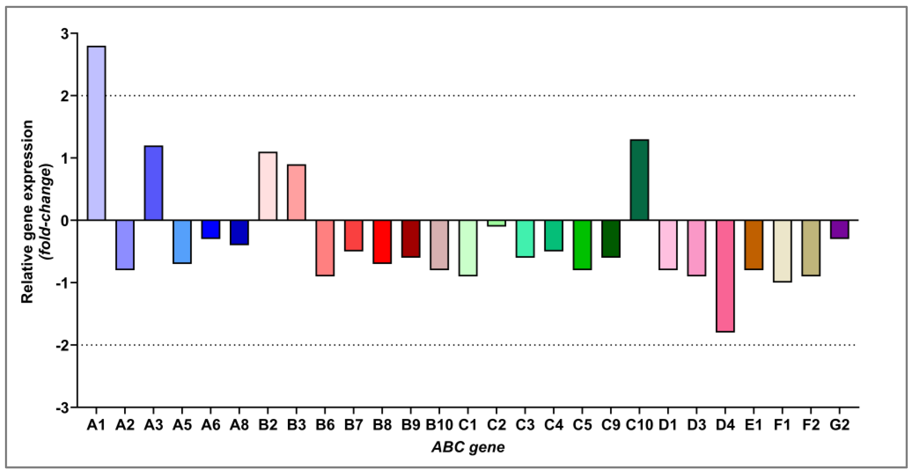 4.7. ABC Transporter Profiling by qPCR Array