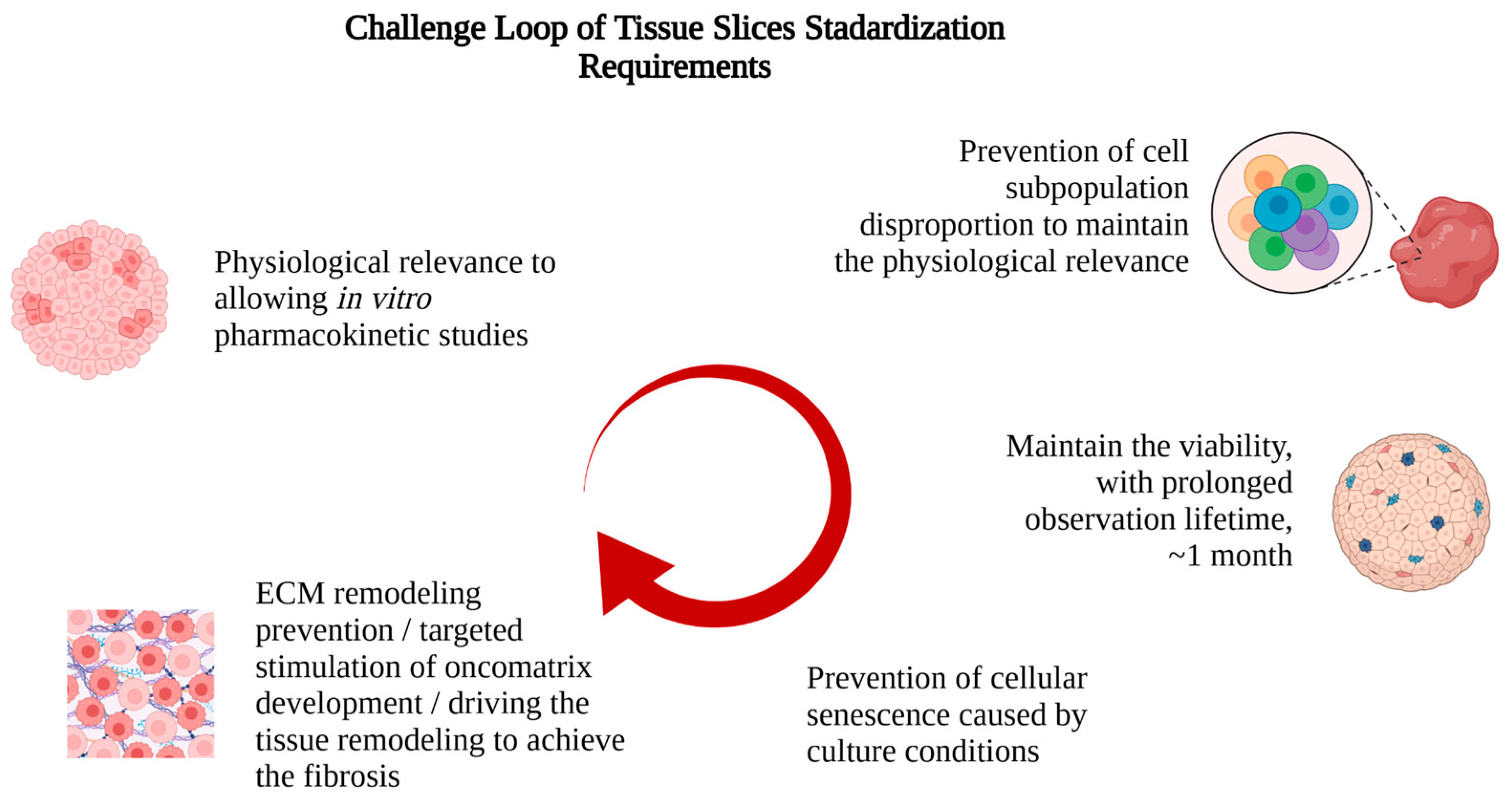 | Vibrating Microtome | Oscillating (vibrating) blade in a buffer bath, frequency 85 Hz. Vibration reduces resistance, compression. A total of 50–1000 µm and deformation of soft tissue. Typical slices thickness: 50–1000 µm (standard ~200–400 µm). | Liver, solid tumors, brain, lung, heart, kidney, pancreatic tissue | [73,74,75,76,77,78,79,80] |
