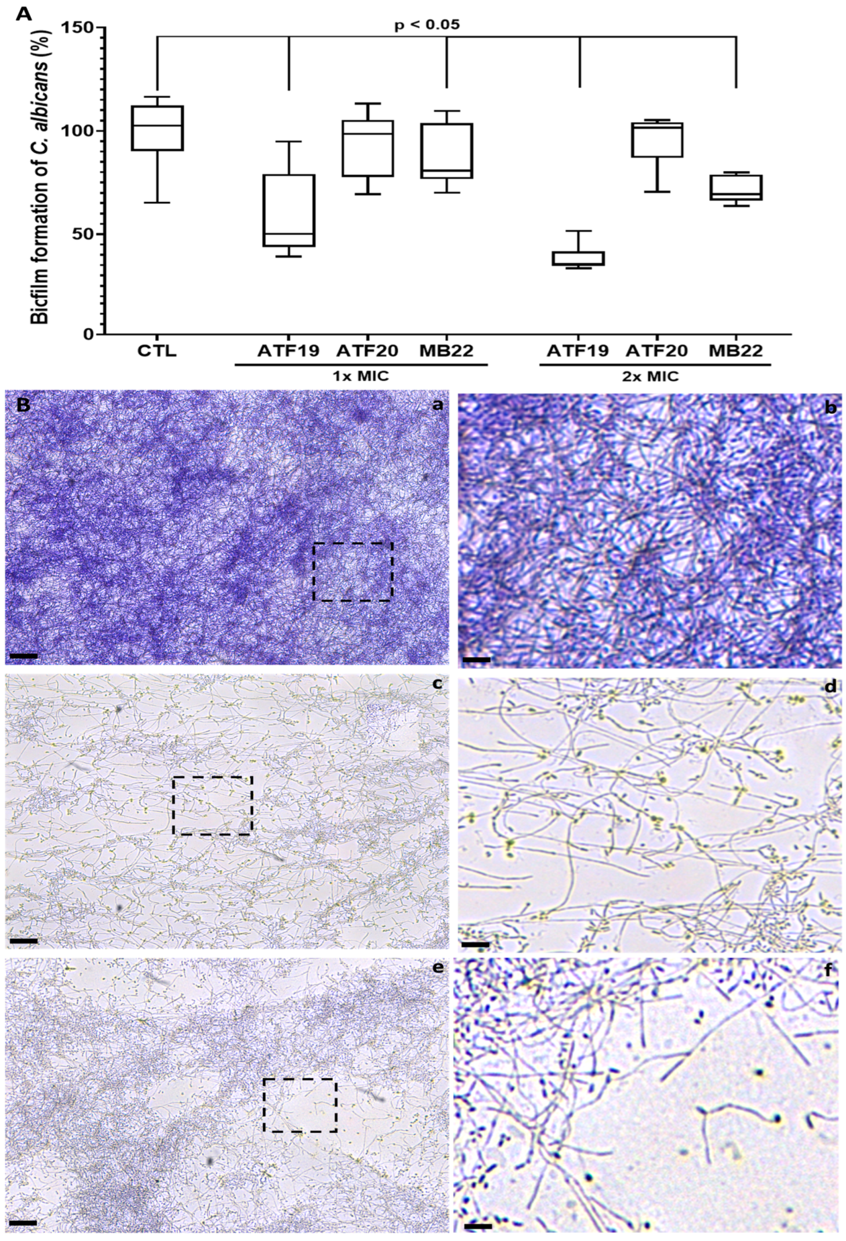 2.3. Impact of Compounds on C. albicans Biofilm Formation