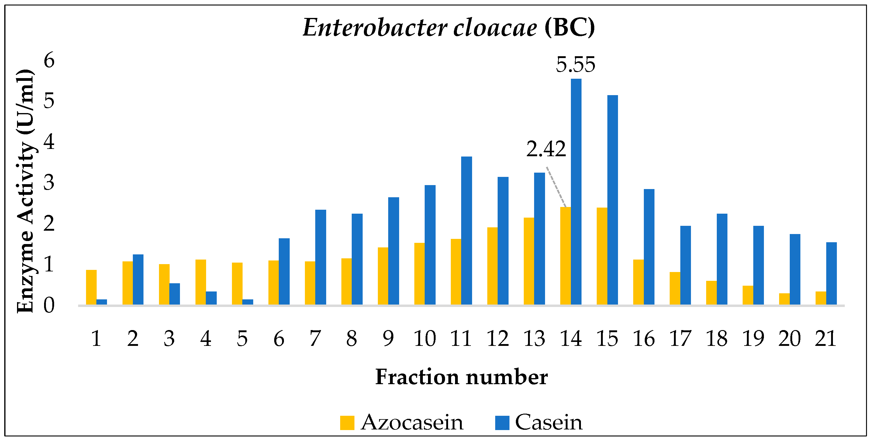 - Cupp-Enyard, C. Sigma’s Non-Specific Protease Activity Assay—Casein as a Substrate. J. Vis. Exp. 2008, 19, e899. [Google Scholar] [CrossRef]