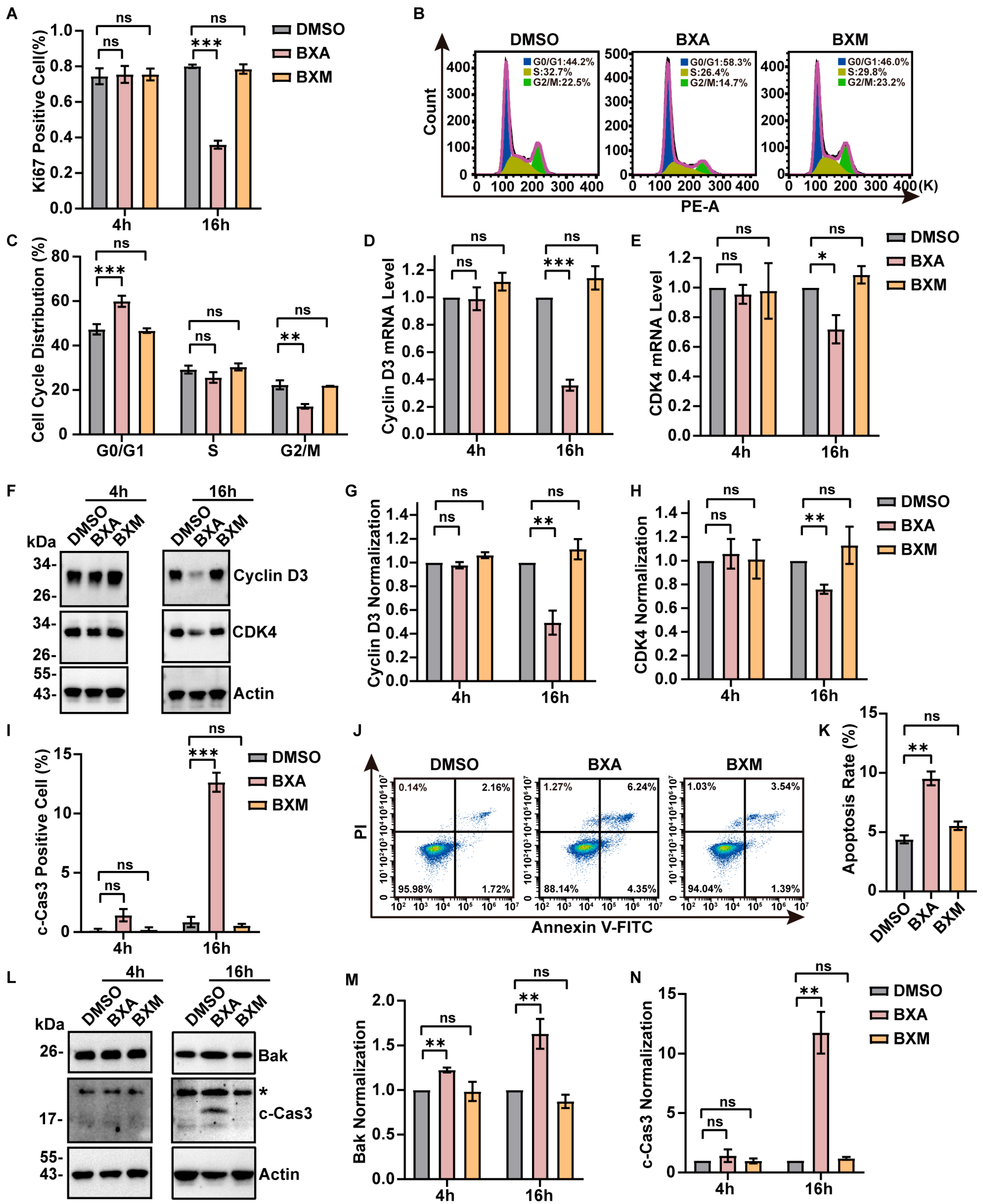 2.4. BXA Treatment Leads to Cell Cycle Arrest and Apoptosis