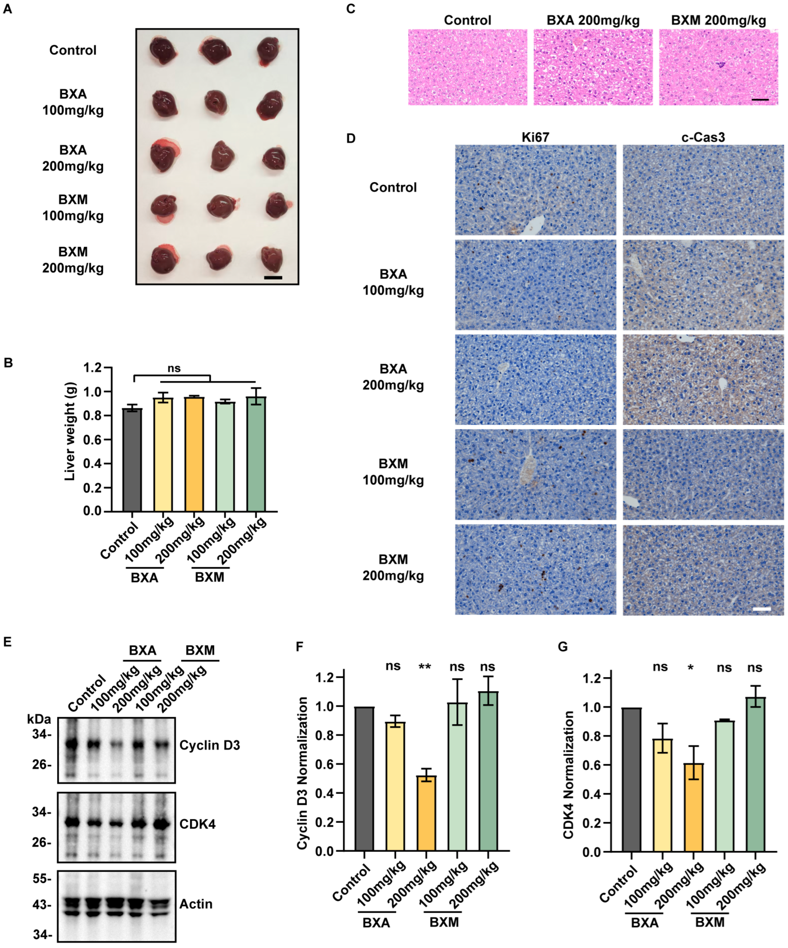 2.6. BXA Induces Liver Toxicity In Vivo