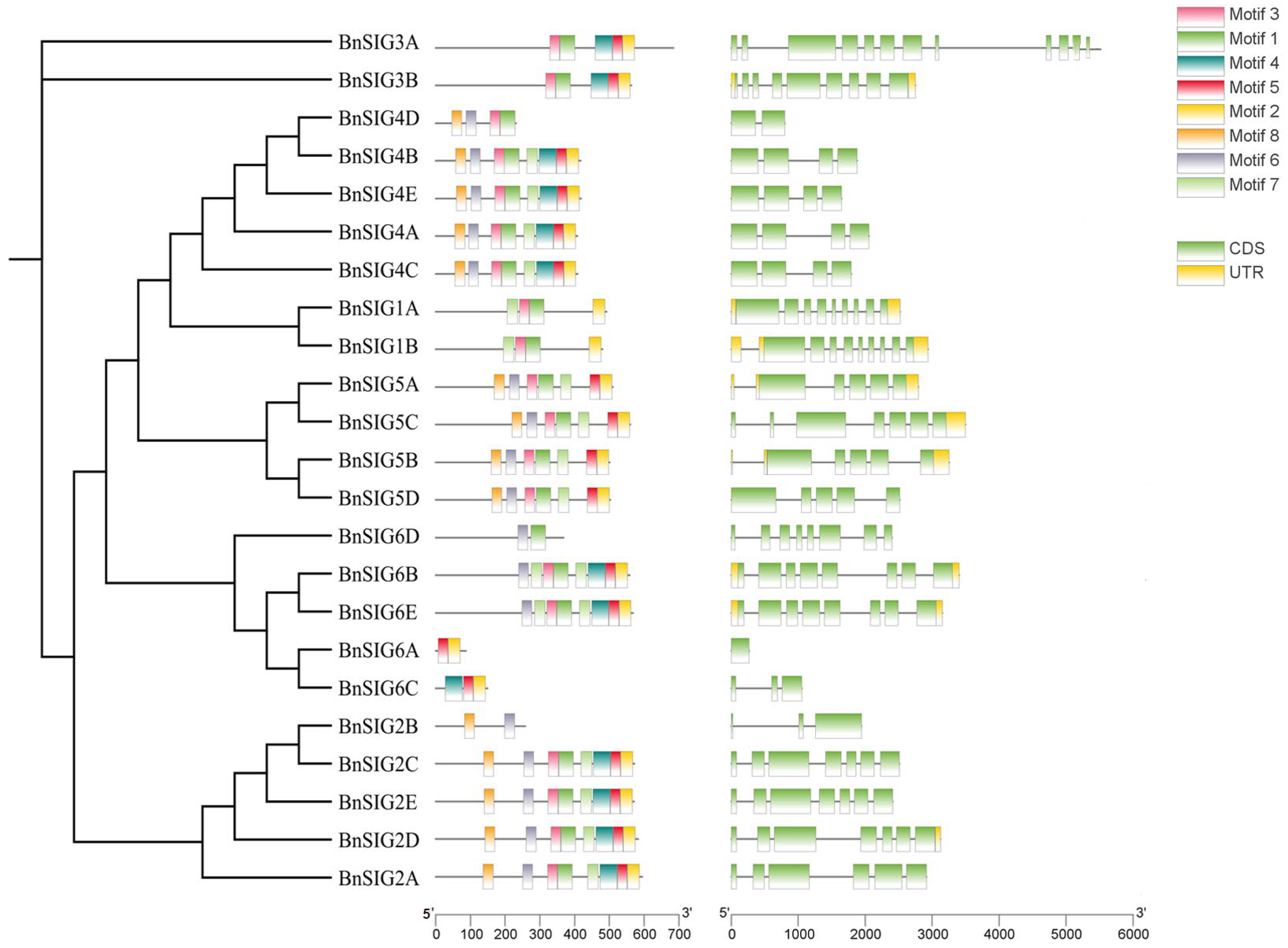 2.1.3. Gene Structure and Conserved Motif Analysis of BnSIG Proteins