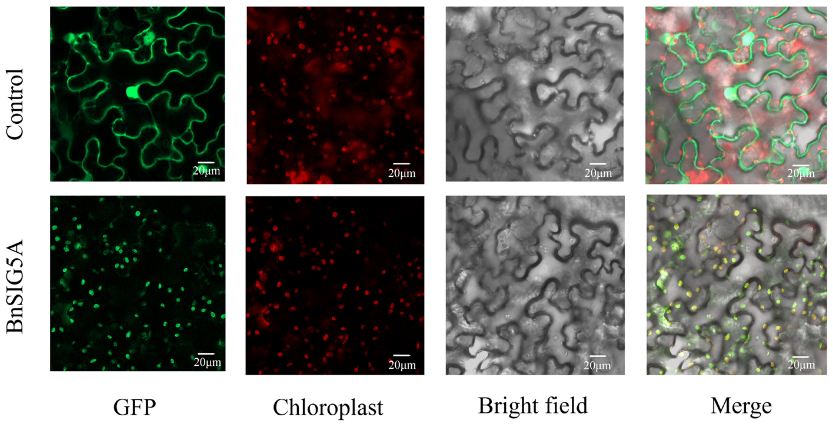 4.7. Subcellular Localization Analysis of SIG5-GFP Protein