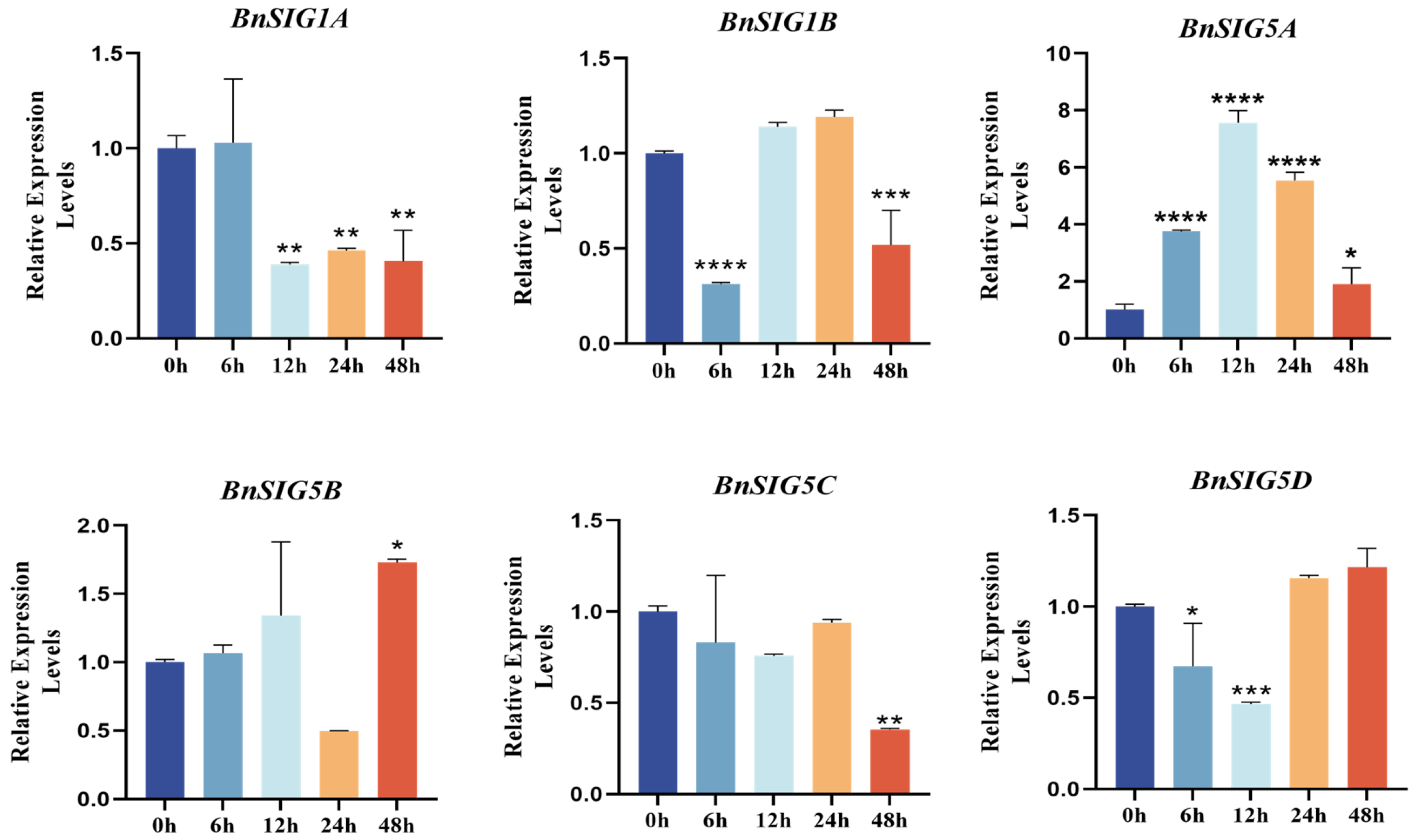 2.3. Expression Analysis of BnSIG Genes and Functional Insights from Arabidopsis SIG5 Mutants