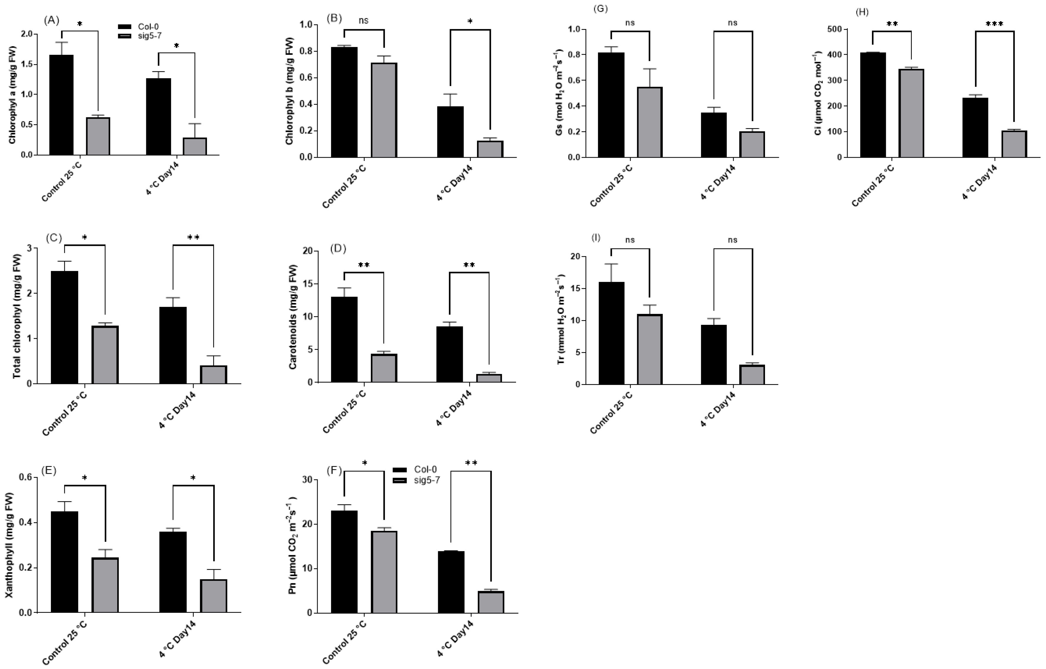 2.3.3. Phenotypic and Physiological Analysis of A. thaliana sig5 Mutants