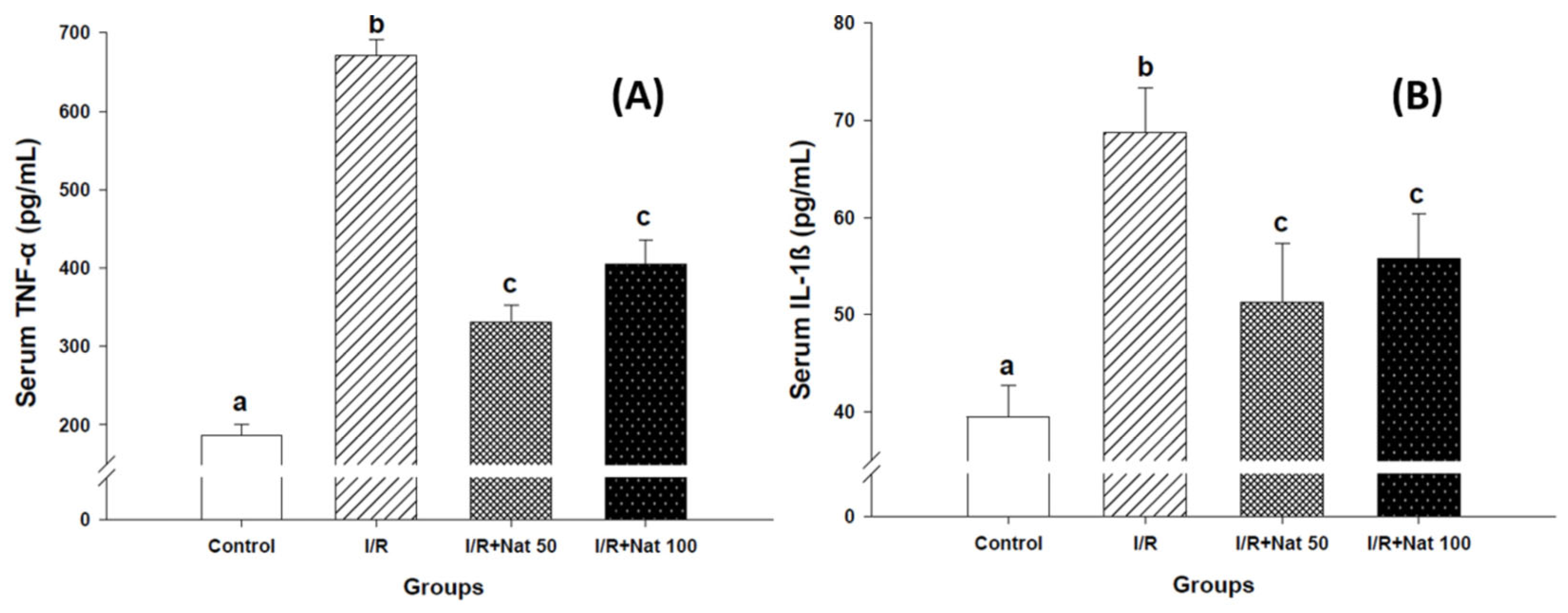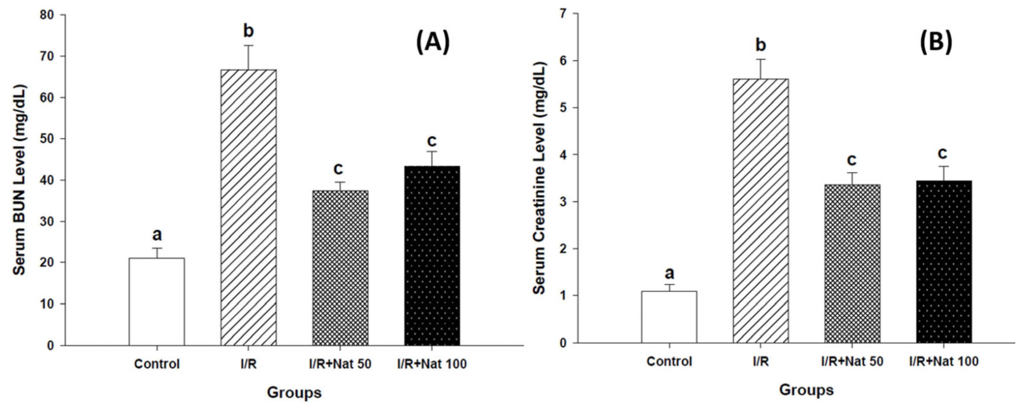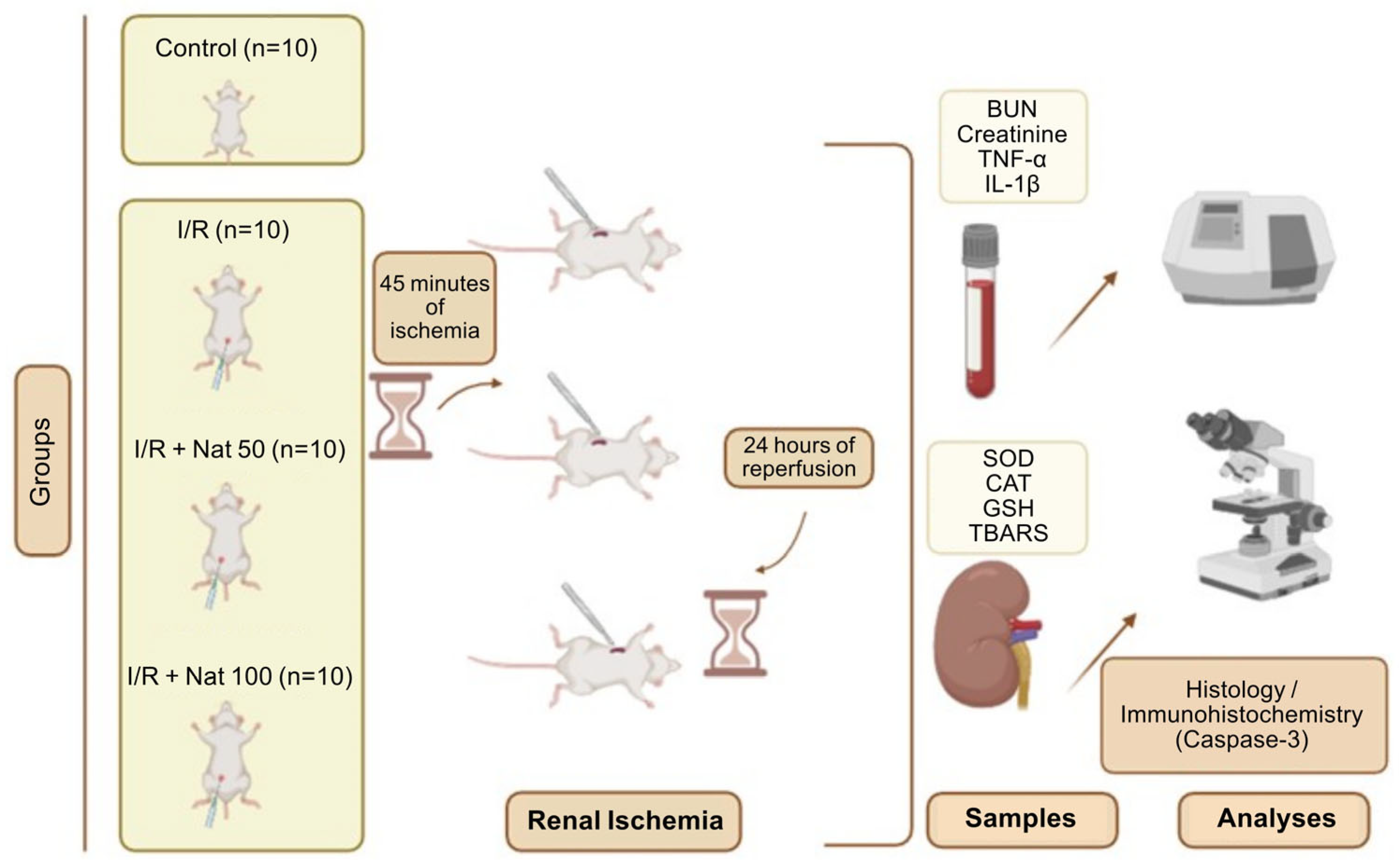 - Bayoumi, A.A.; Ahmad, E.A.; Ibrahim, I.; Mahmoud, M.F.; Elbatreek, M.H. Inhibition of both NOX and TNF-α exerts substantial renoprotective effects in renal ischemia reperfusion injury rat model. Eur. J. Pharmacol. 2024, 970, 176507. [Google Scholar] [CrossRef]