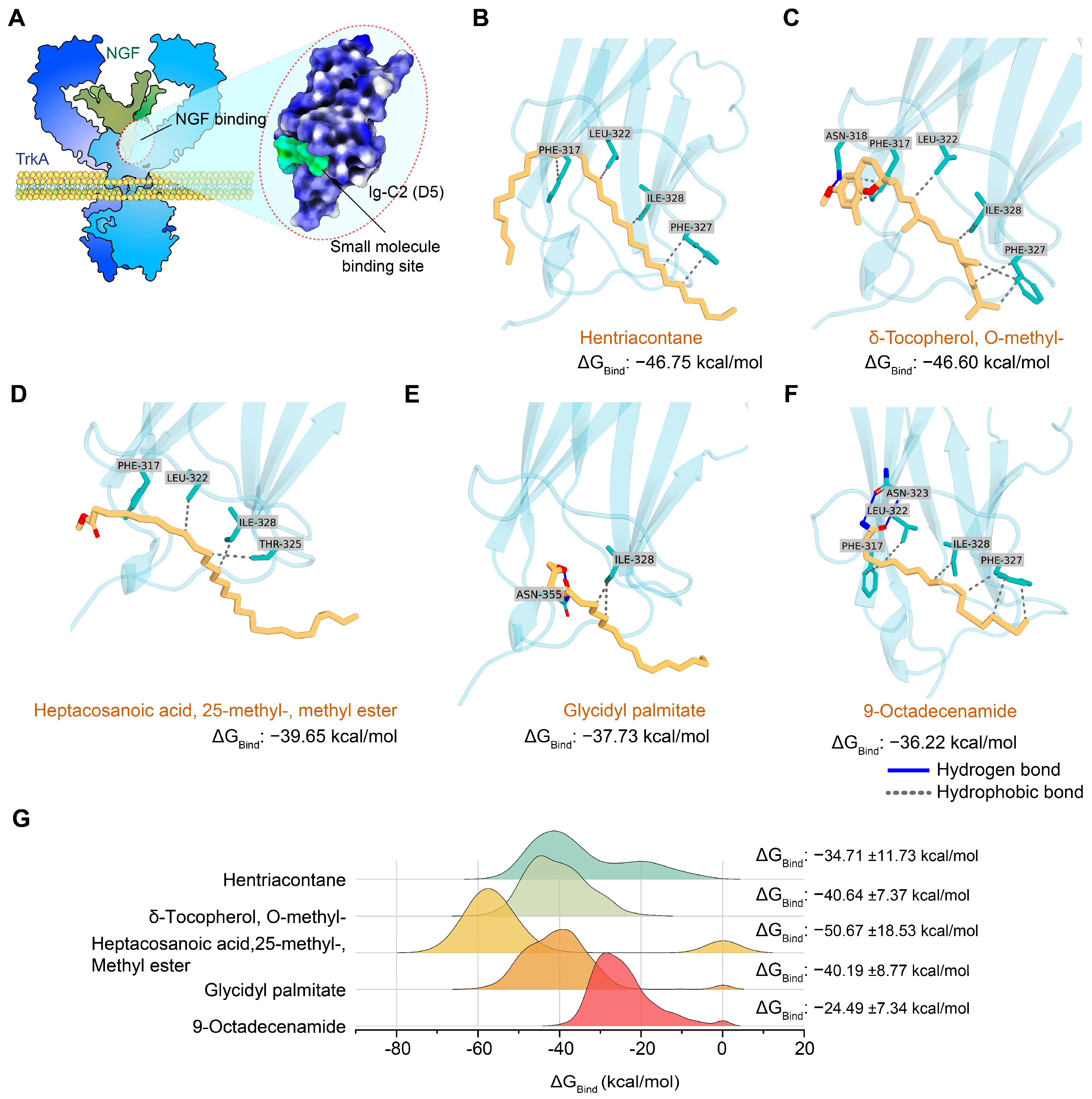 2.5. Structure-Based Screening of BMEE Compounds for Potential TrkA Receptor Activator