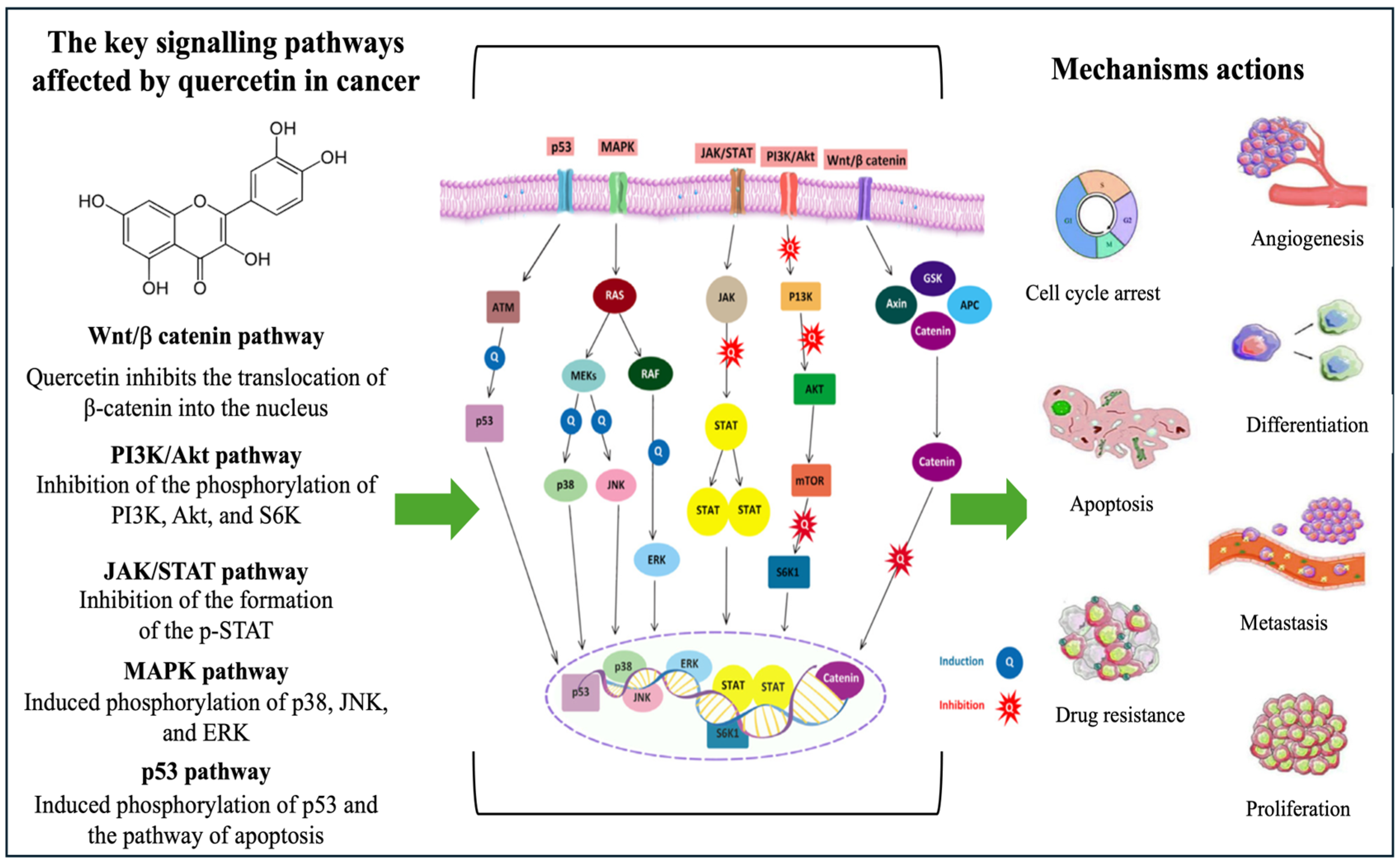 | Breast cancer MCF-7 and MDA-MB-468 | Inhibition of ERK1/2 and AKT signalling and modulation of the expression of cell cycle regulators. | [164] |
