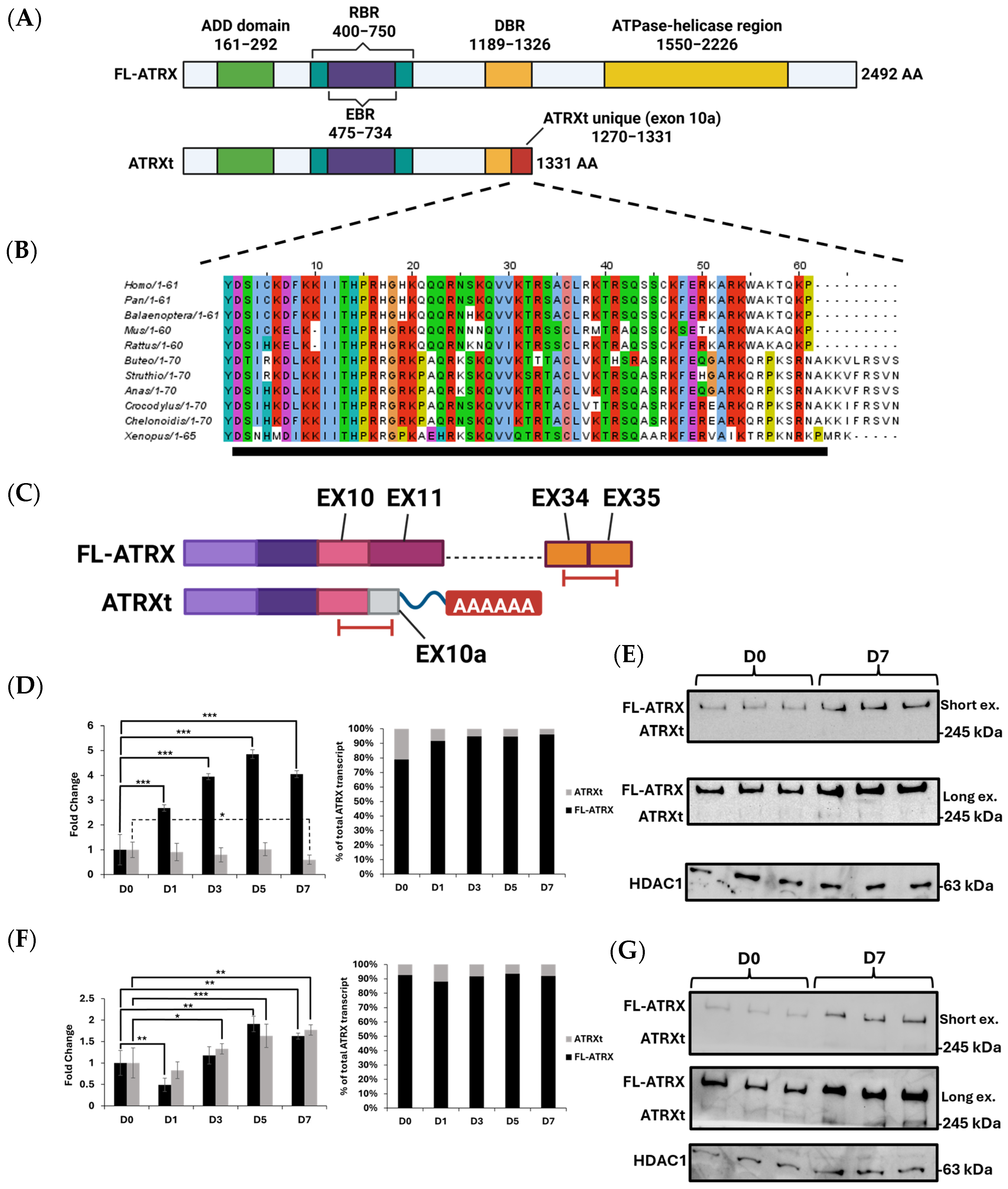 2.1. The Amino Acid Sequence and Expression Profile of ATRXt Compared to FL-ATRX